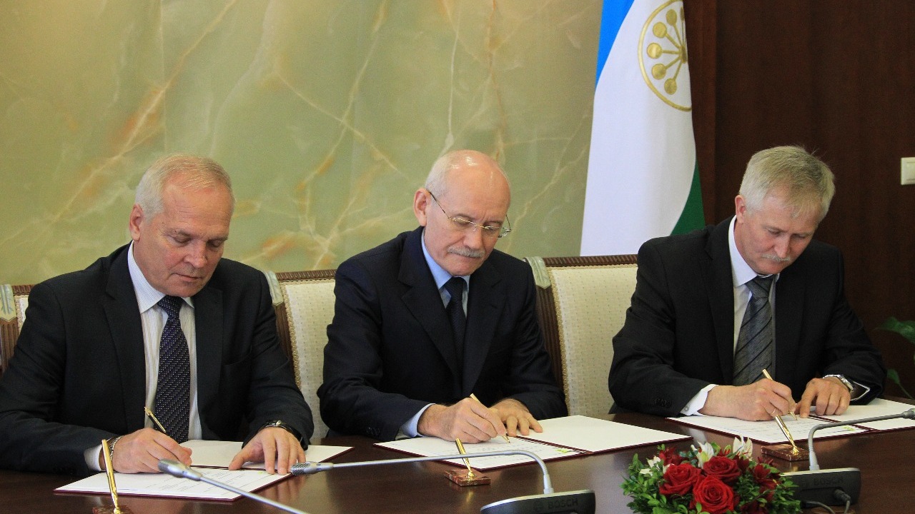 УФА, 20 апр 2016. /ИА «Башинформ», Александр Смирнов/. 20 апреля в Доме Республики представителями Республиканской трёхсторонней комиссии по регулированию социально-трудовых отношений подписано Соглашение о минимальной заработной плате в Башкортостане. Свои подписи под документом поставили Глава республики Рустэм Хамитов, председатель Федерации профсоюзов РБ Марат Хусаинов и председатель Союза работодателей РБ Владимир Шолом.