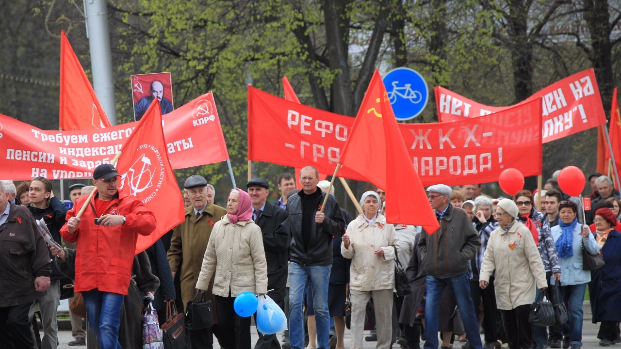 Колонна прошлась с оркестром, флагами и транспарантами от кинотеатра «Искра» к площади В.И. Ленина. Возглавляли шествие первые лица регионального отделения КПРФ. Участниками митинга стали не только электоральный костяк — пенсионеры, но и довольно много молодежи.