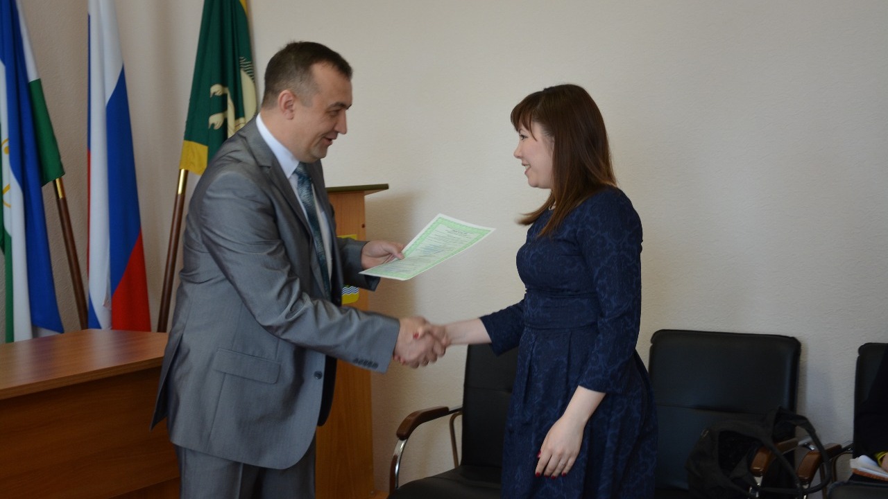 УФА, 5 май 2016. /ИА «Башинформ», Алим Фаизов/. В администрации Учалинского района 5 мая состоялось торжественное вручение жилищных сертификатов в рамках реализации федеральной целевой программы «Устойчивое развитие сельских территорий на 2014-2017 годы и на период до 2020 года».