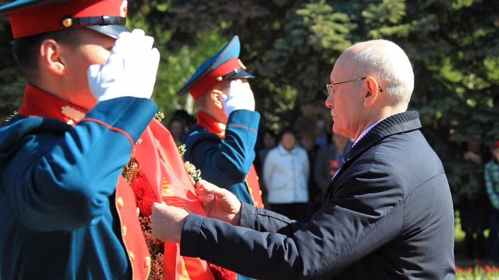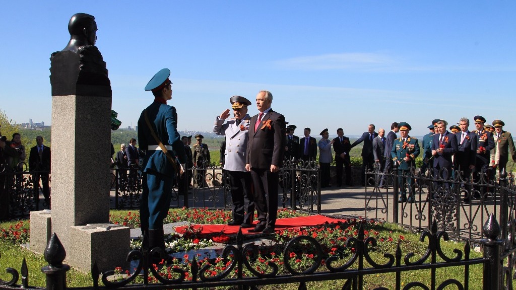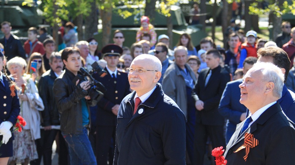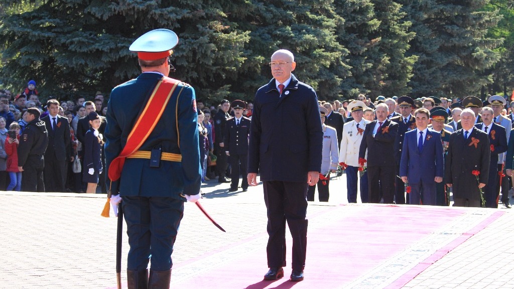 УФА, 9 май 2016. /ИА «Башинформ», Александр Смирнов/. 9 мая в уфимском парке Победы Глава Башкортостана Рустэм Хамитов принял участие в торжественной церемонии, посвященной 71-й годовщине Победы в Великой Отечественной войне.