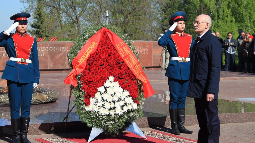 Руководитель республики возложил живые цветы к памятнику, посвященному бессмертному подвигу Героев Советского Союза Александра Матросова и Миннигали Губайдуллина, у подножия которого горит Вечный огонь. После исполнения гимнов Российской Федерации и Республики Башкортостан Глава региона почтил минутой молчания память защитников Отечества, павших на фронтах Великой Отечественной войны.