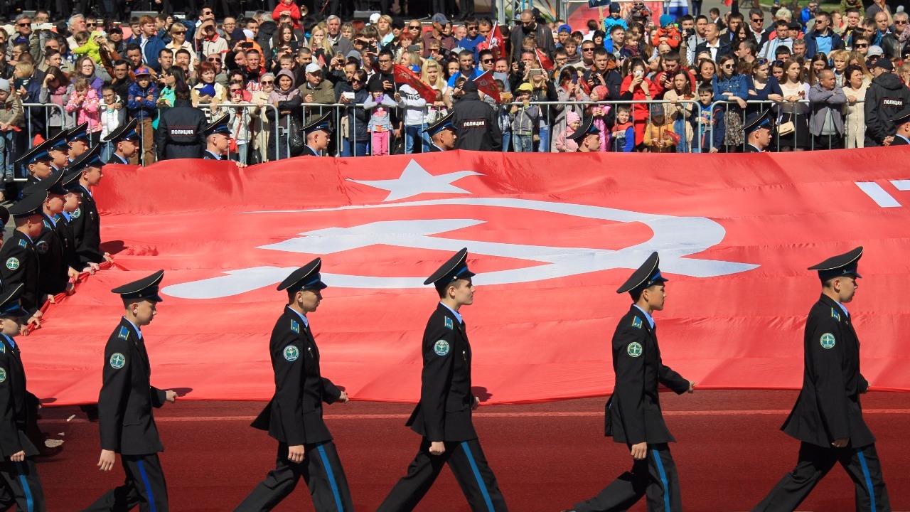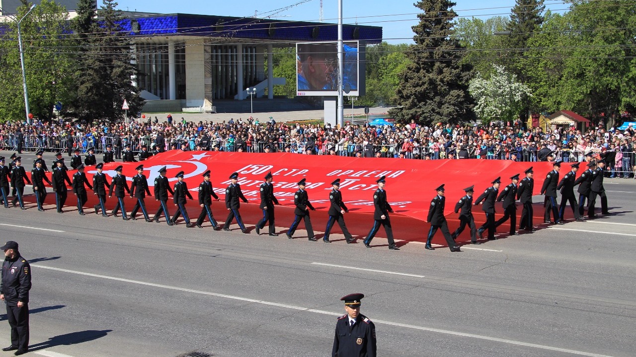 Возглавила колонну уфимского «Бессмертного полка» копия Знамени Победы, являющаяся официальным символом Победы советского народа и Вооруженных Сил над фашистской Германией в Великой Отечественной войне.