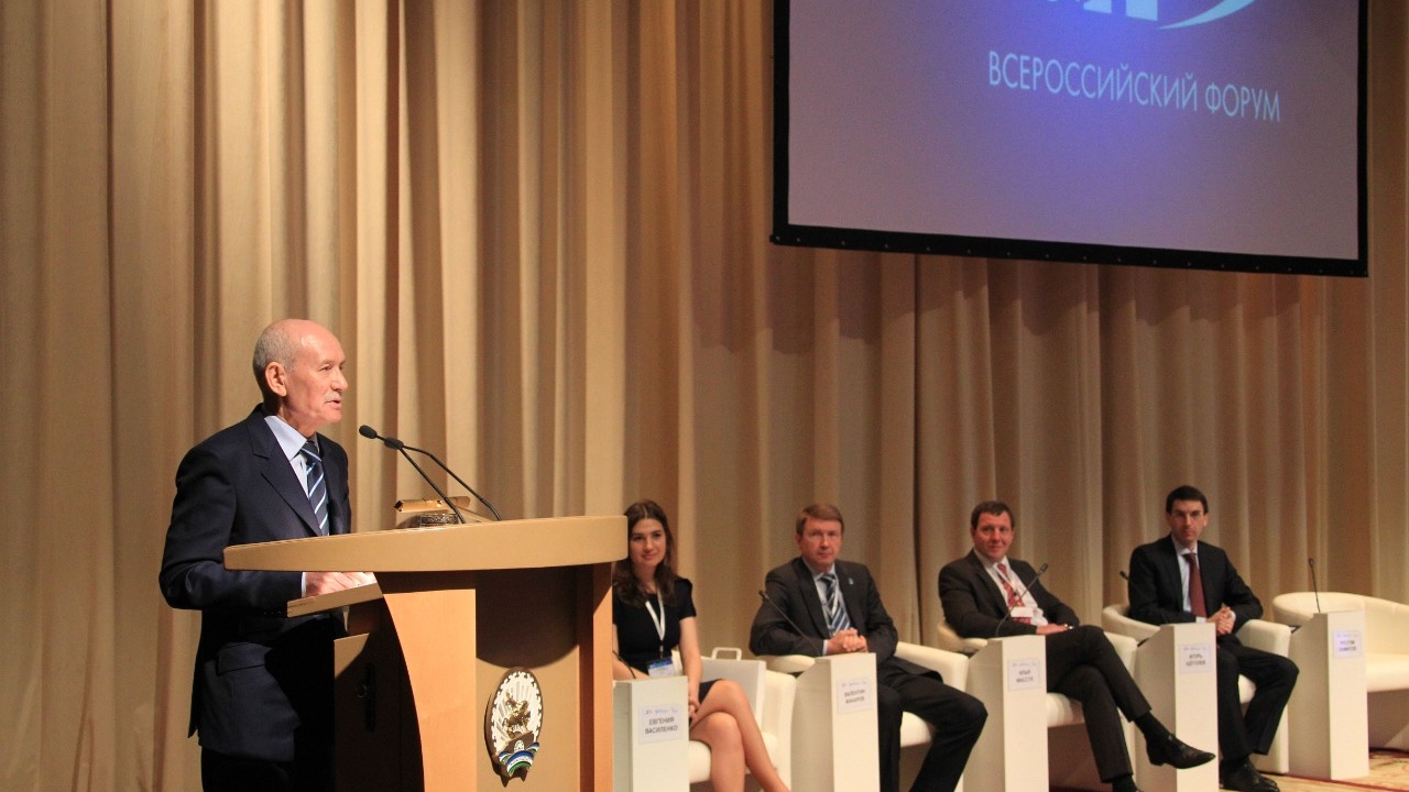 УФА, 16 май 2016. /ИА «Башинформ», Александр Смирнов/. 16 мая в уфимском Конгресс-холле помощник Президента Российской Федерации Игорь Щёголев и Глава Башкортостана Рустэм Хамитов выступили на пленарном заседании Всероссийского форума региональной и муниципальной информатизации «ПРОФ-IT.2016».