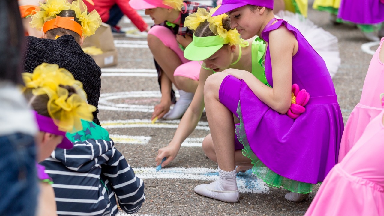 В Уфимском саду Аксакова прошел масштабный детский праздник. Его участники и гости вместе нарисовали самый большой аленький цветочек, который расцвел прямо на асфальте, заиграв яркими красками.