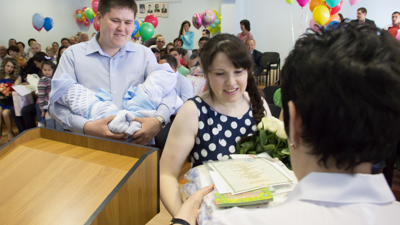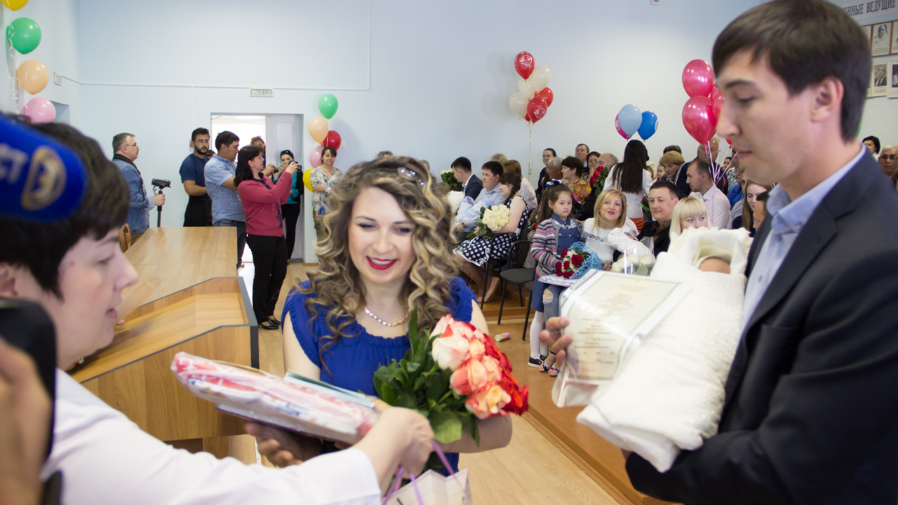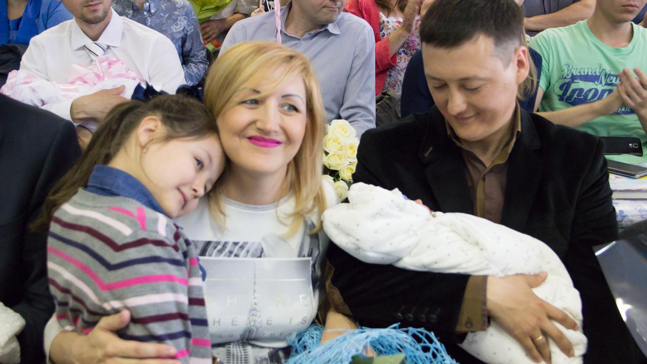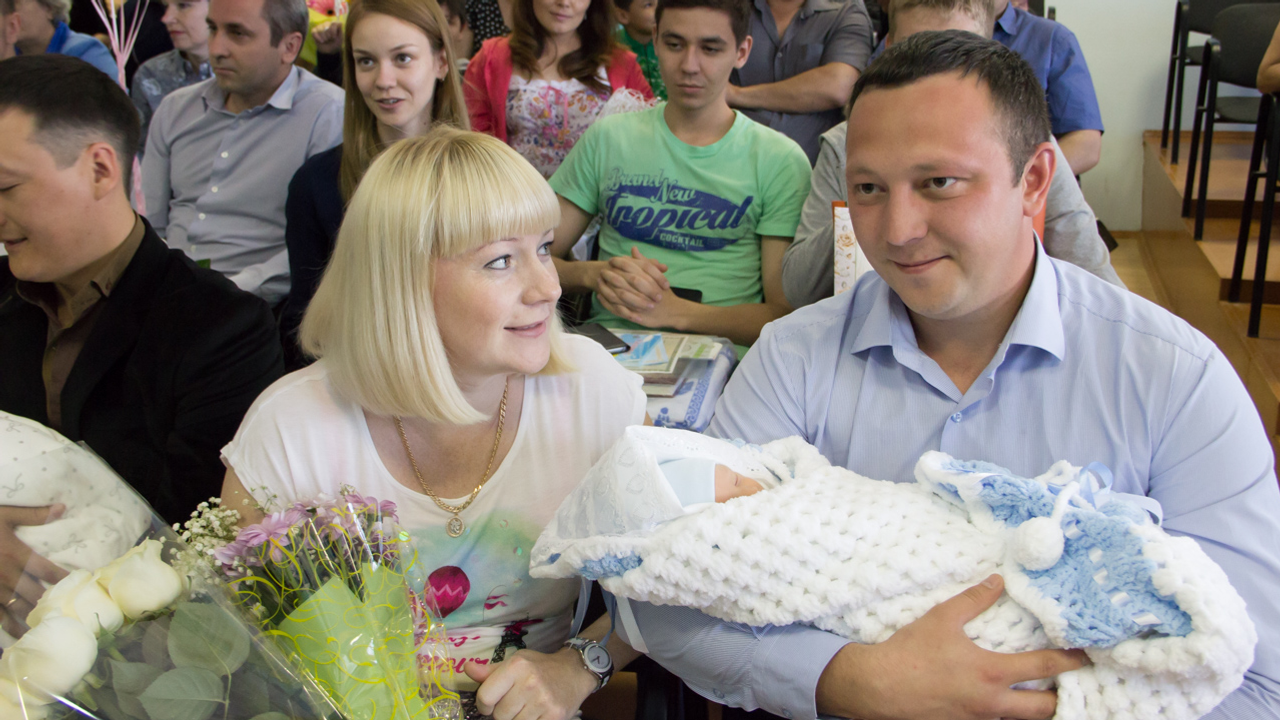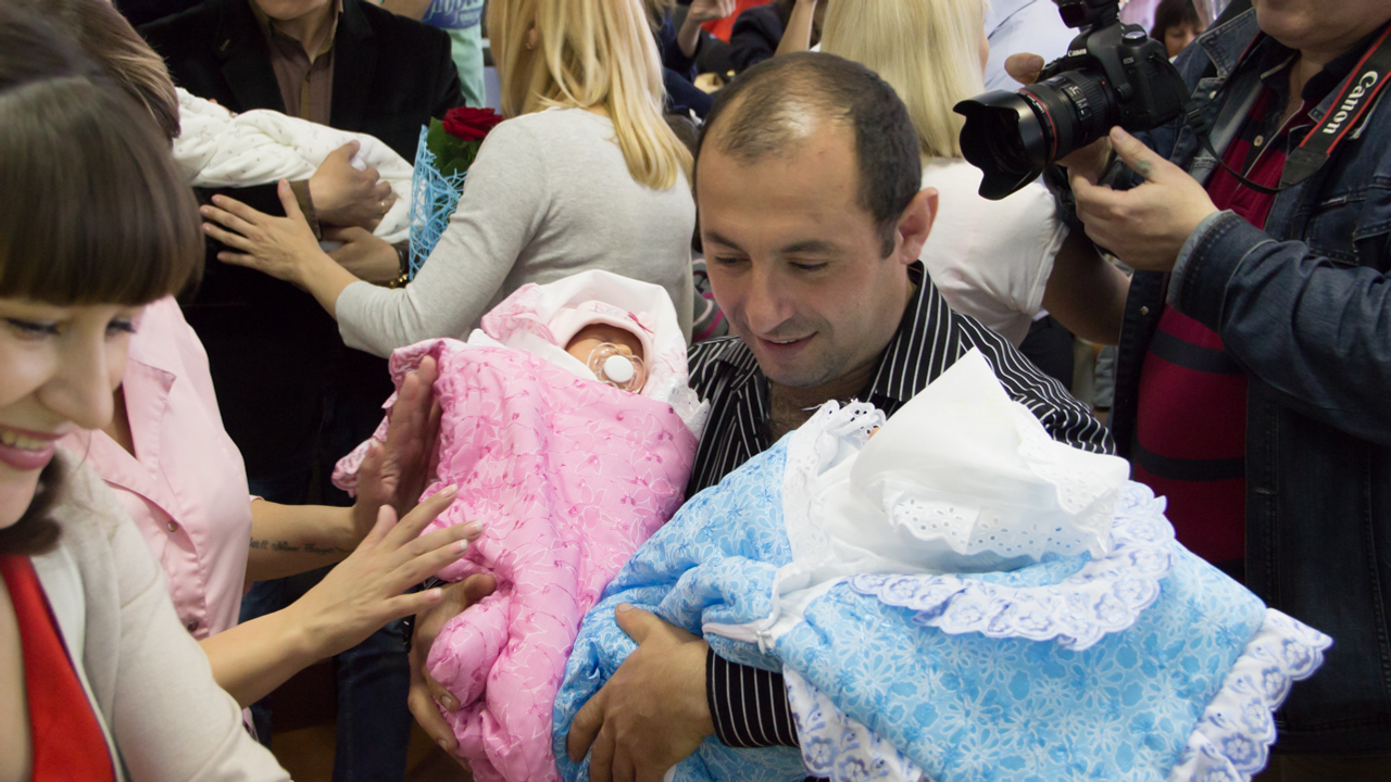 1 июня торжественная выписка состоялась для восьми семей, причем в двух из них родились двойни. Самым трогательным моментом стало появление в конференц-холле роддома мам с новорожденными. Папы с нетерпением заглядывали в синие и розовые конверты, чтобы поскорее увидеть своих детей.