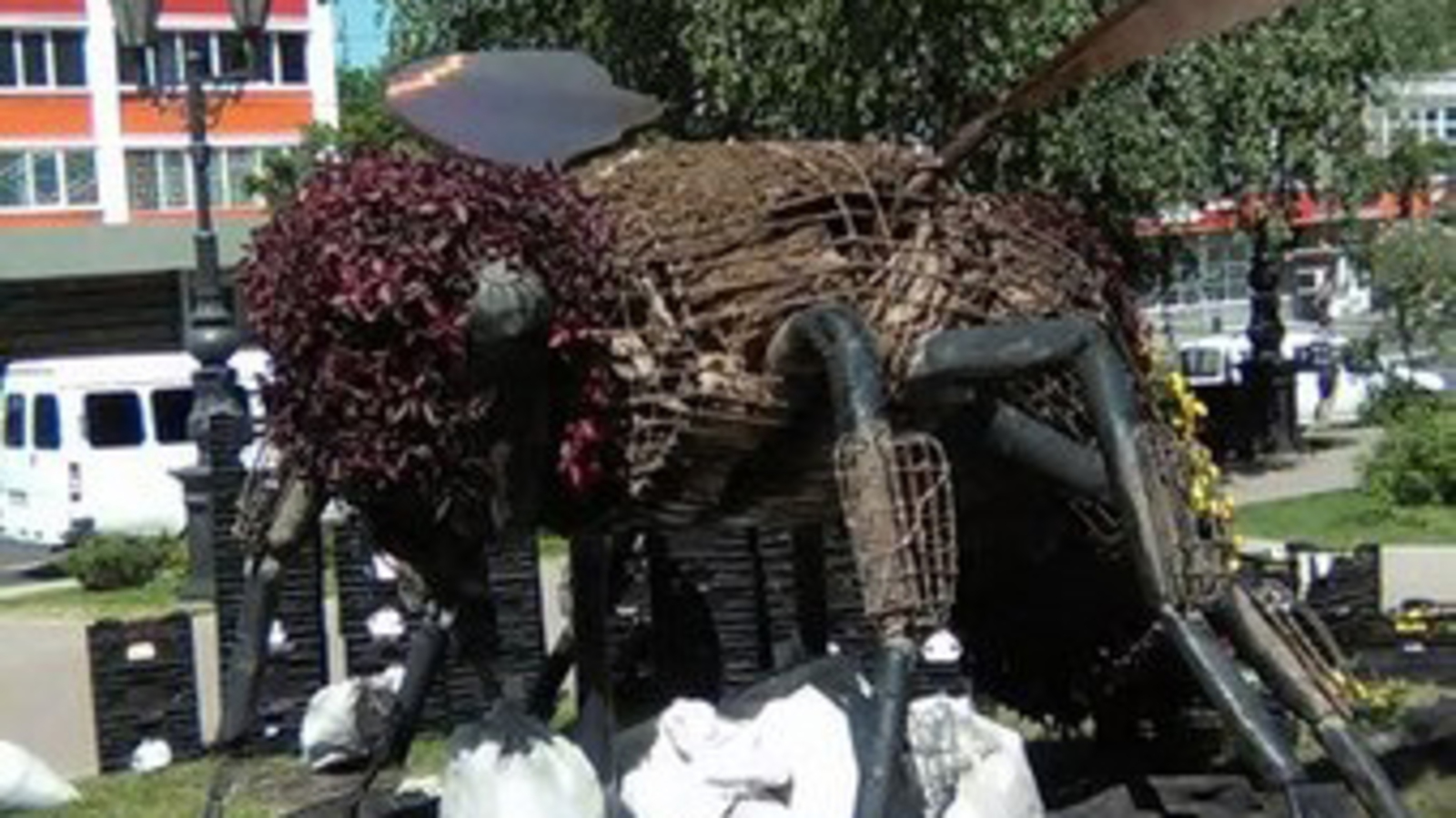 УФА, 2 июн 2016. /ИА «Башинформ», Ольга Муртазина/. В Уфе зарядили цветами памятник бурзянской пчеле. Сотрудники «Горзеленхоза» открыли запакованный на зиму металлический каркас и заполнили его саженцами. Этот объект вошел в рейтинг самых необычных памятников страны и обязательно присутствует в путеводителях по Уфе. В них сообщается, что конструкцию придумали голландские специалисты, получившие заказ к празднованию 450-летия вхождения Башкирии в состав России.