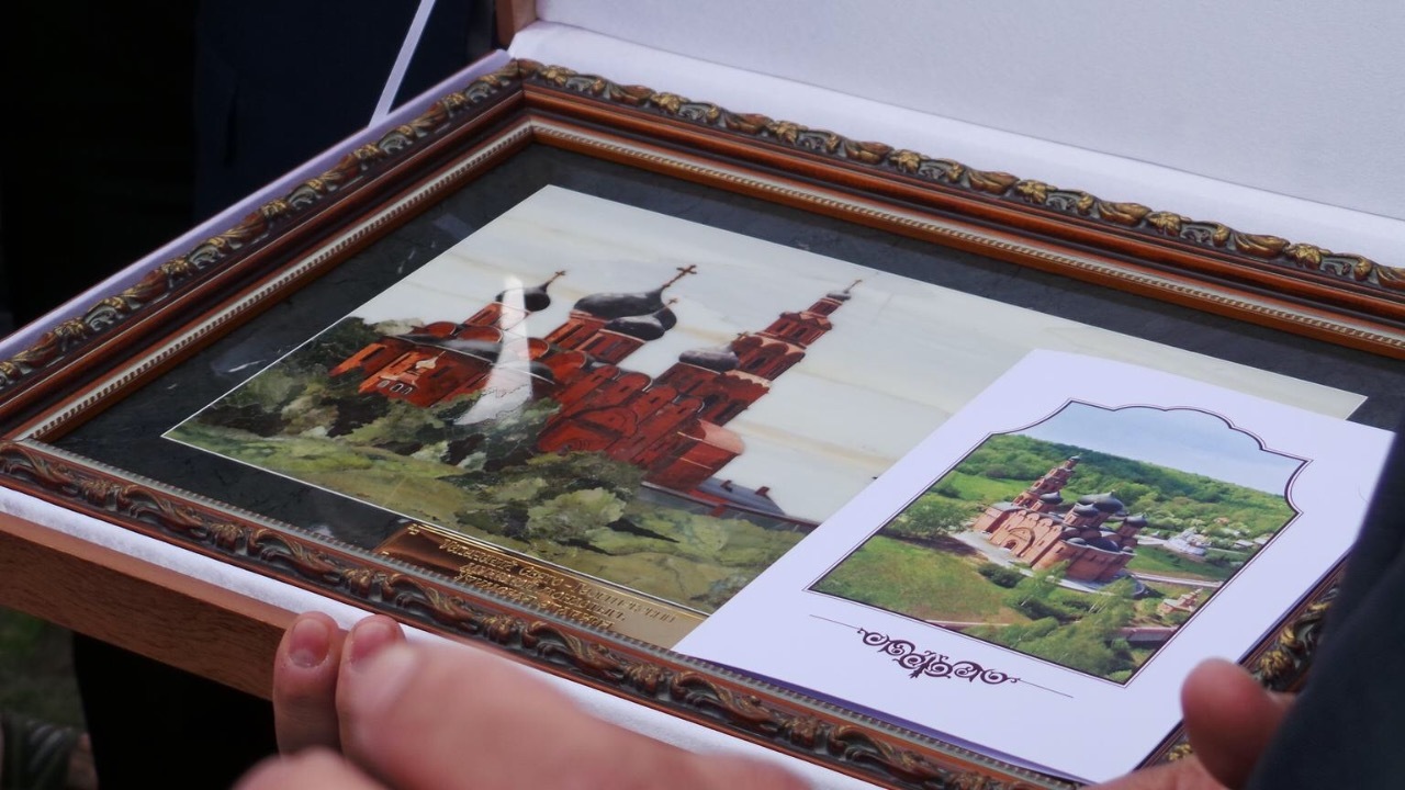 На службу Святейшего Патриарха пришли несколько тысяч человек. Почетный гость приветствовал их благословениями. Освятив памятный крест, Патриарх Кирилл поделился с жителями воспоминаниями о своем предке.