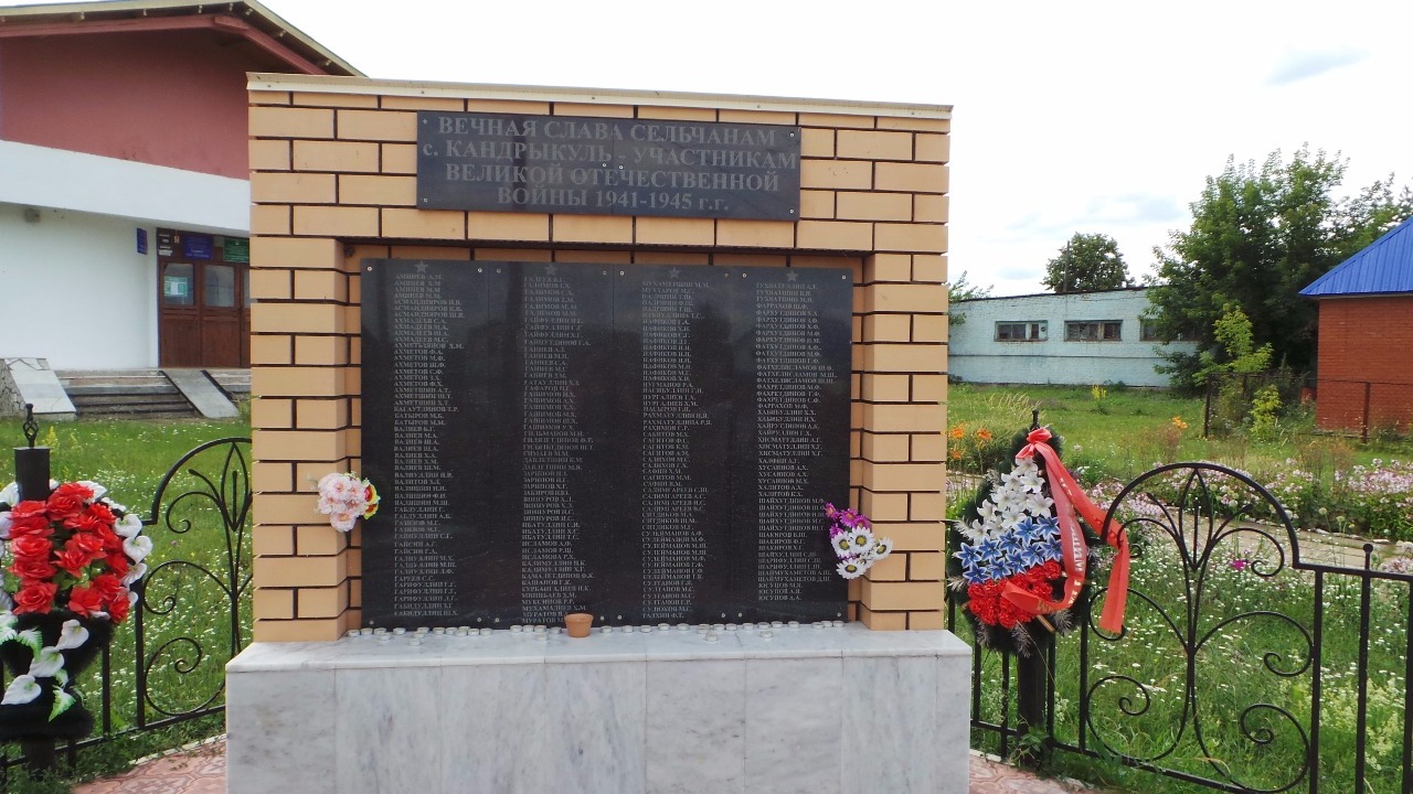 Так, например, новые обелиски появились в селах Кандры-Тюкеево, Кандрыкуль, Николаевка. Это движение не остановилось после празднования 70-летия Победы - в нынешнем году еще один монумент появился в деревне Каран-Бишинды. Идея создания памятника принадлежит жителям села Фаису Гильфанову, Талгату Кашапову, братьям Абуталибу и Фавису Мухаметшиным, которые выступили с предложением на сходе граждан, взяли на себя сбор, учет денежных средств и приняли непосредственное участие в возведении обелиска.