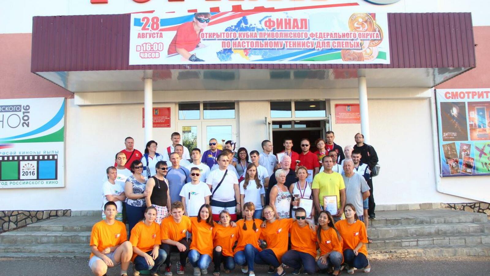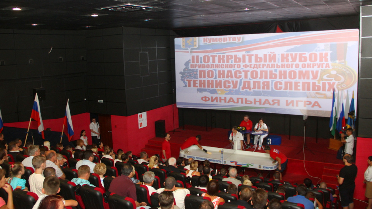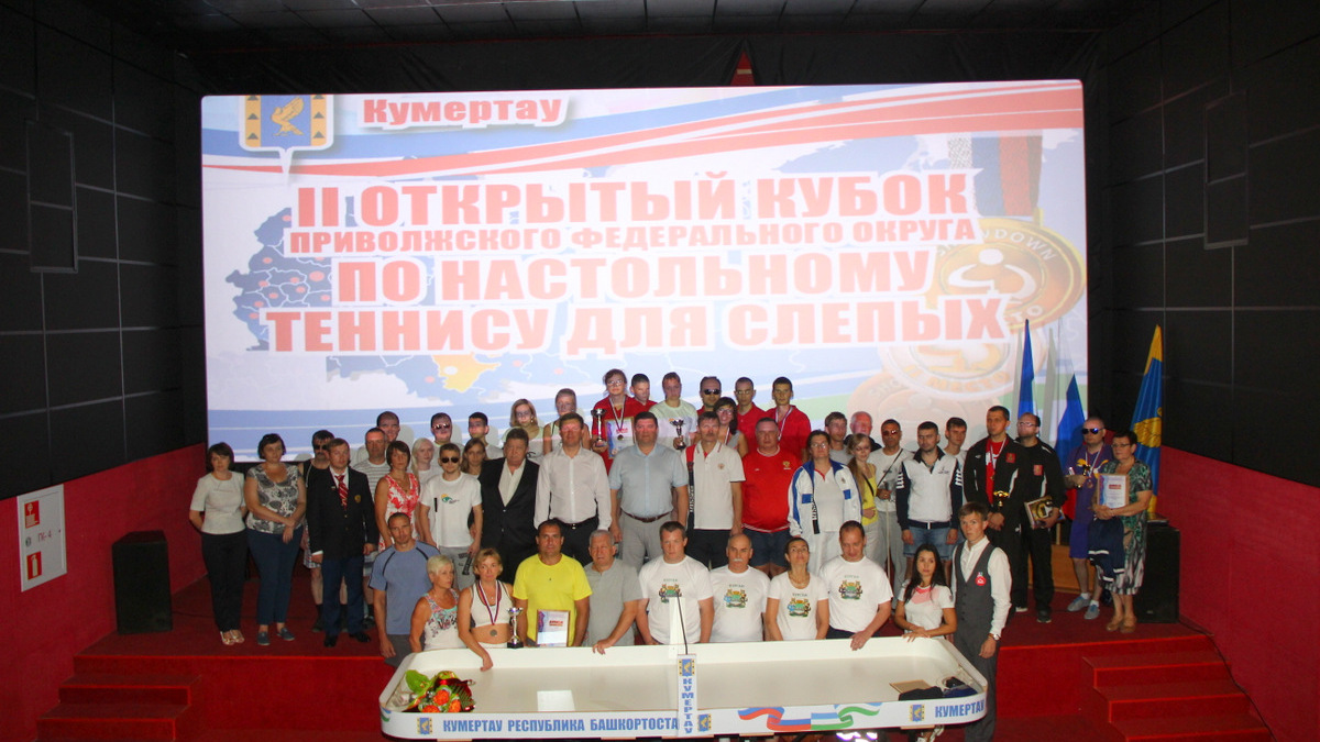 УФА, 29 авг 2016. /ИА «Башинформ», Гульфия Акулова/. В Кумертау, в зале кинотеатра «Горняк», завершились финальные игры и состоялась церемония закрытия II Открытого Кубка Приволжского федерального округа по настольному теннису среди слепых. Почетными гостями стали заместитель министра труда и социальной защиты населения Башкортостана Юрий Мельников, директор республиканского Центра спортивной подготовки Евгений Емельянов, председатель региональной организации Всероссийского общества слепых Юрий Акшенцев и глава администрации Кумертау Борис Беляев.