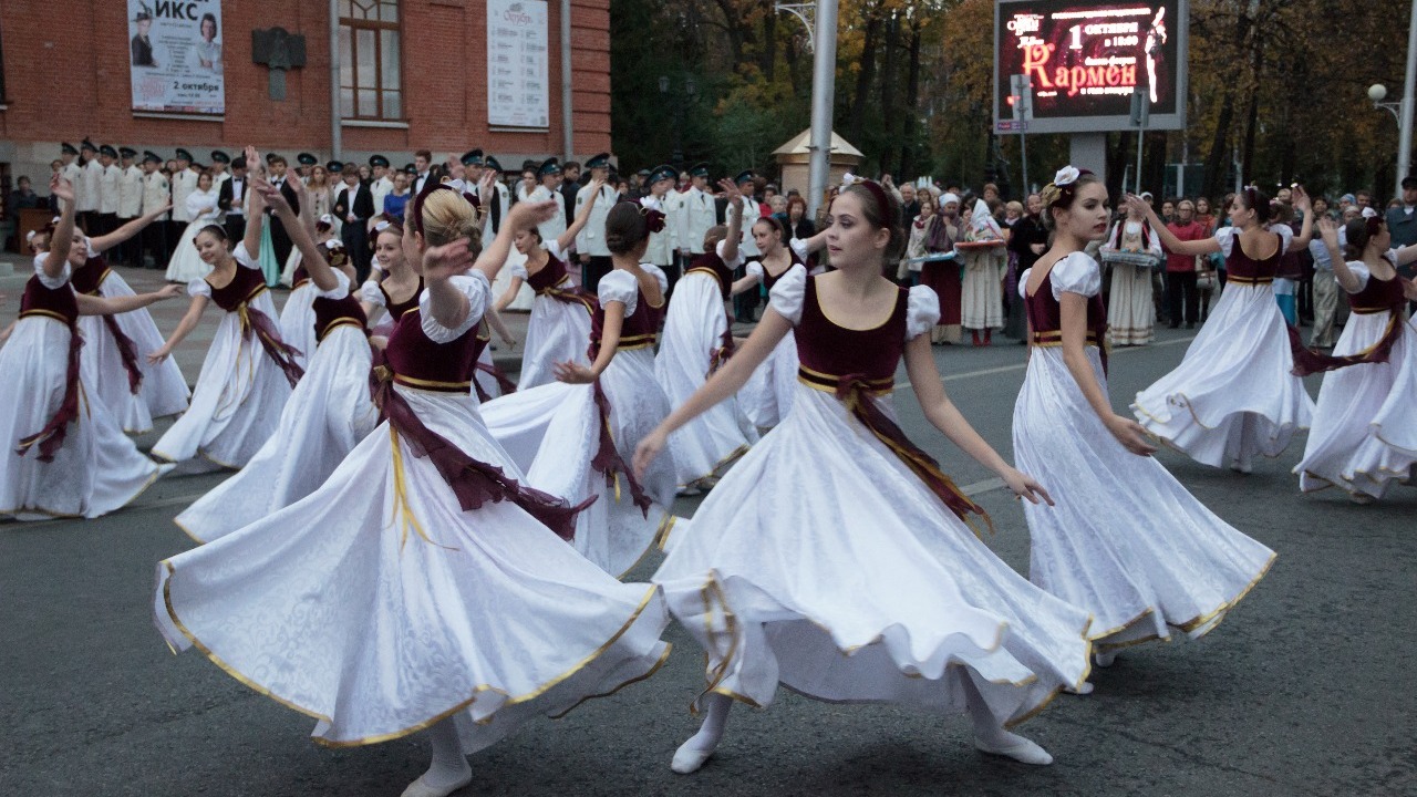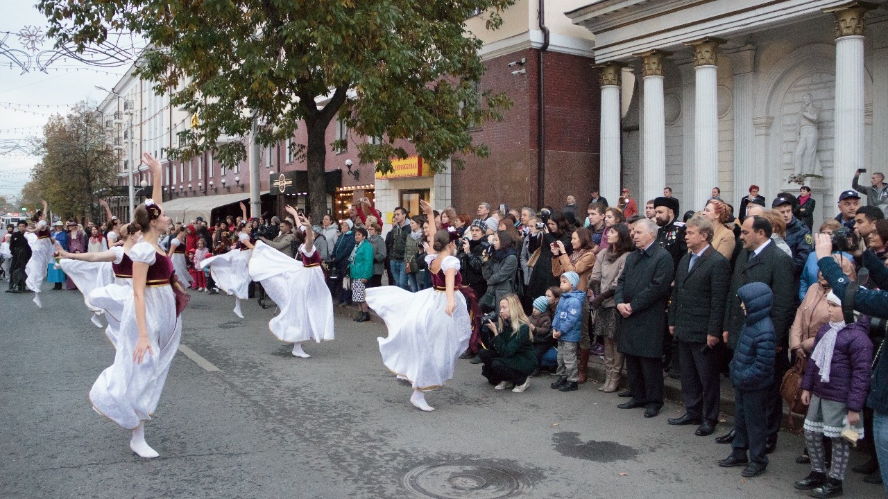УФА, 30 сен 2016. /ИА «Башинформ», Арина Рахимкулова/. В Уфе гости Международного Аксаковского праздника посетили традиционный бал. Костюмированное торжество состоялось прямо на улице перед Башкирским государственным театром оперы и балета.
