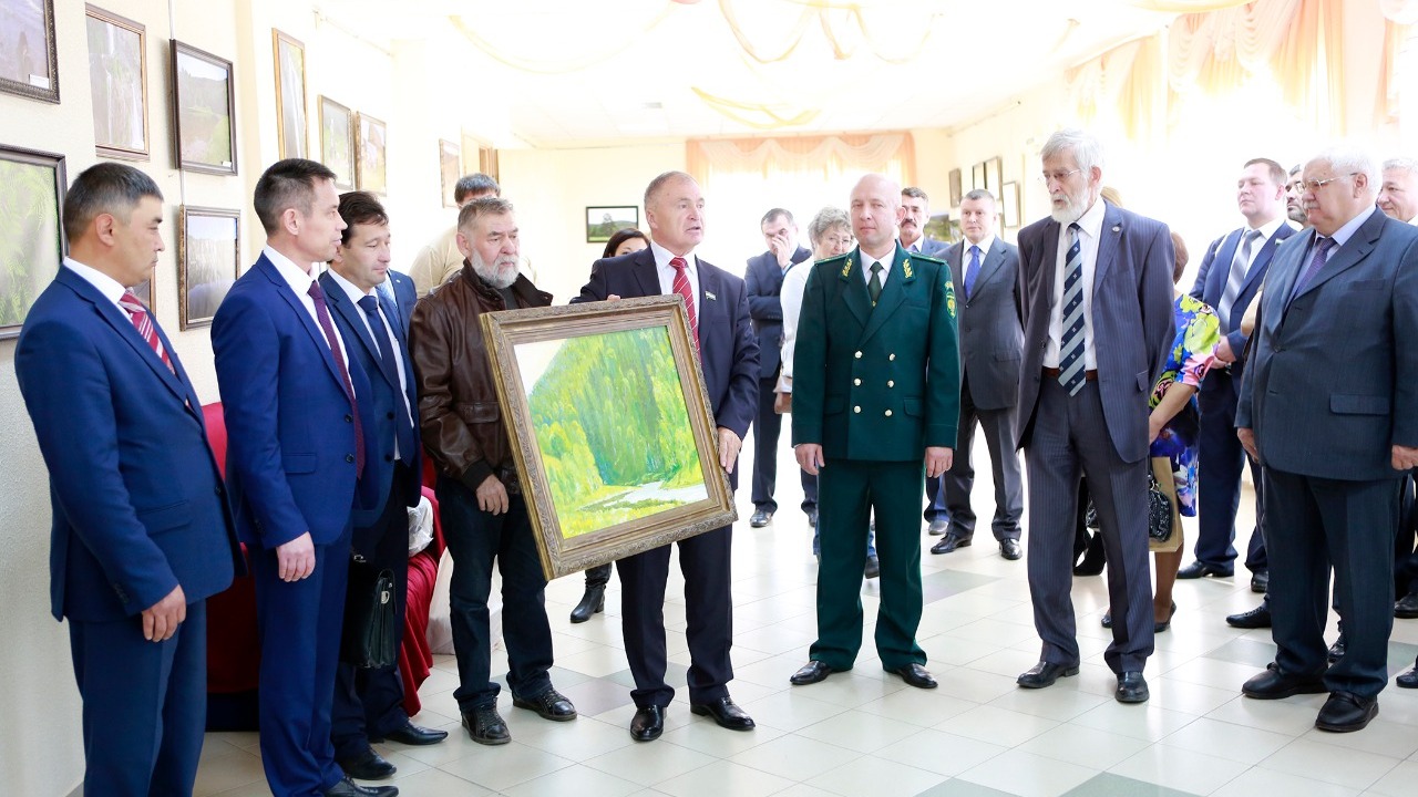 Перед началом торжественного собрания Вячеслав Аброщенко открыл фотовыставку башкирского отделения Русского географического общества, посвященную 30-летию нацпарка «Башкирия», где представлены работы известных фотохудожников республики Фаиля Абсатарова, Андрея Старостина, Олега Яровикова, Александра Данилова и других.