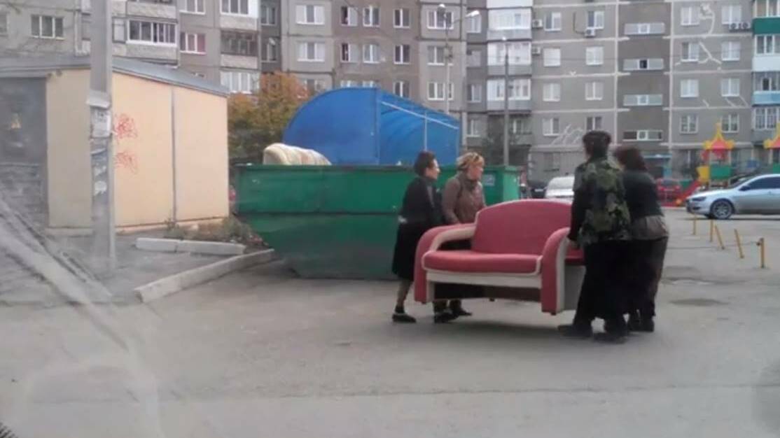 В Уфе четыре женщины вытащили из мусорного бака розовый диван - ВИДЕО