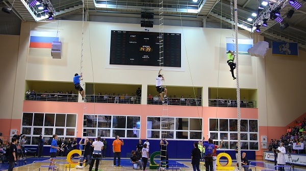 После свистка судьи началось прохождение полосы препятствий. В этой эстафете папы были на высоте в прямом смысле этого слова: главам семейств приходилось забираться по веревочной лестнице почти под купол зала. Все испытания были сложными, для их успешного прохождения требовалась сила, скорость, меткость, но главное - сплоченность.