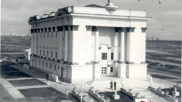 УФА, 26 окт 2016. /ИА «Башинформ», Гульфия Акулова/. В Уфе на портик фасада кинотеатра «Победа» вернулась скульптурная композиция «Воин-освободитель, рабочий и колхозница», служившая его украшением до начала 21 века, сообщает администрация столицы.