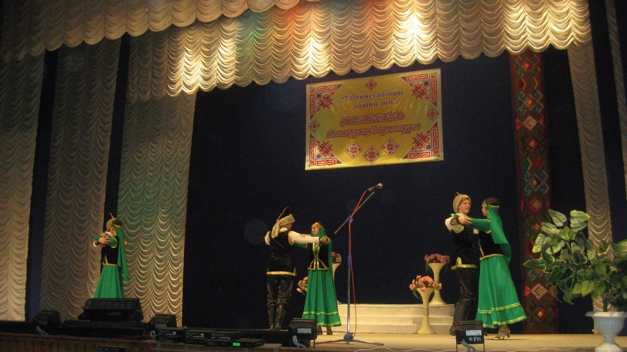 В исполнении артистов Узбекистана прозвучали песни на башкирском языке «Башкортостан», «Тыуған илем», «Һандуғас». Местный детско-юношеский ансамбль «Дуҫлыҡ» исполнил танцы «Гульназира», «Дуҫлыҡ бейеүе», «Башҡорт егеттәре бейеүе», «Кадриль». Украшением концерта стало выступление артистов Стерлитамакского театрально-концертного объединения. Солисты Гузалия Янгазина и Ильдар Абдрашитов, кураист Динар Абдуллин исполнили башкирские народные песни «Уралым», «Таштуғай» и другие национальные композиции.