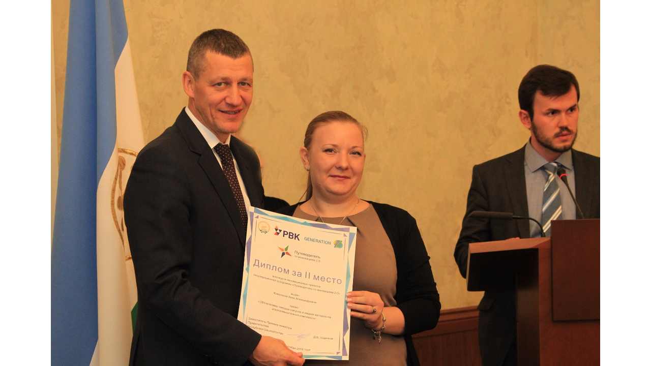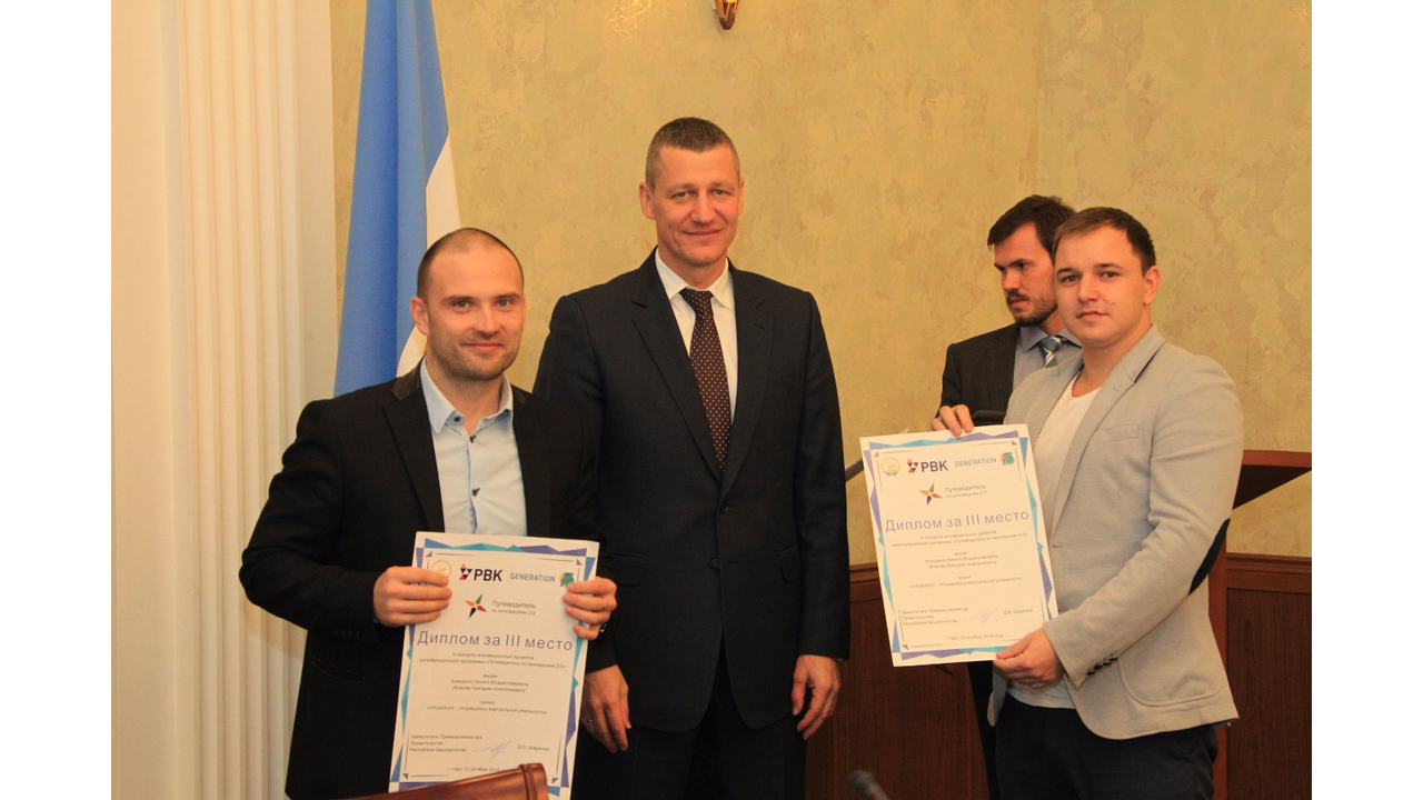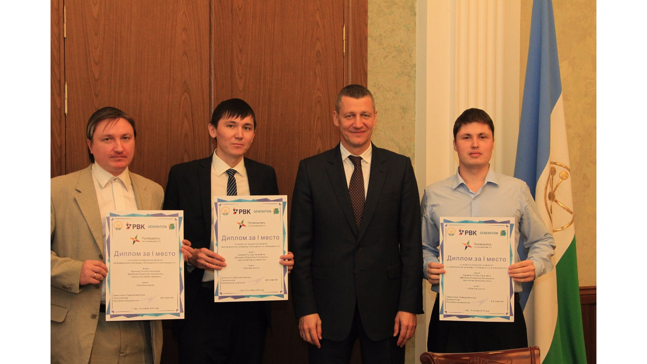 УФА, 1 ноя 2016. /ИА «Башинформ», Ксения Калинина/. В Уфе наградили победителей конкурса инновационных проектов Акселерационной программы «Путеводитель по инновациям 2.0», генеральным партнером которой является Российская венчурная компания (РВК). В Доме Правительства Башкортостана 1 ноября заместитель Премьер-министра Правительства республики Дмитрий Шаронов вручил авторам проектов-победителей дипломы и пообщался с финалистами конкурса-акселератора GenerationS. Участники рассказали о своих изобретениях, поделились проблемами, возникшими при реализации инноваций. Дмитрий Шаронов принял во внимание поступившие запросы по оказанию административной и информационной поддержки со стороны Правительства республики.