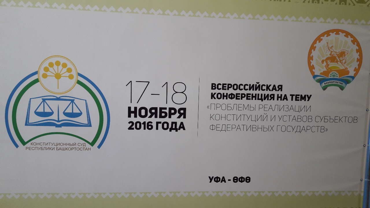 УФА, 17 ноя 2016. /ИА «Башинформ», Ксения Калинина/. В Уфе 17 ноября открылась всероссийская конференция с участием председателей и судей Конституционных судов субъектов страны «Проблемы реализации конституций и уставов субъектов федеративных государств».