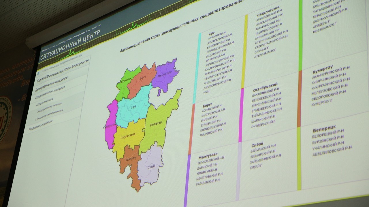 Здесь же разместился ситуационный центр Министерства здравоохранения РБ. Он предназначен для принятия административных решений на основе данных Единой республиканской медико-информационной аналитической системы, которая уже более трёх лет функционирует во всех медицинских учреждениях региона.