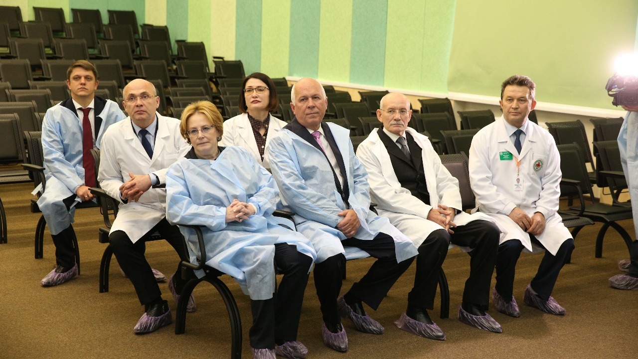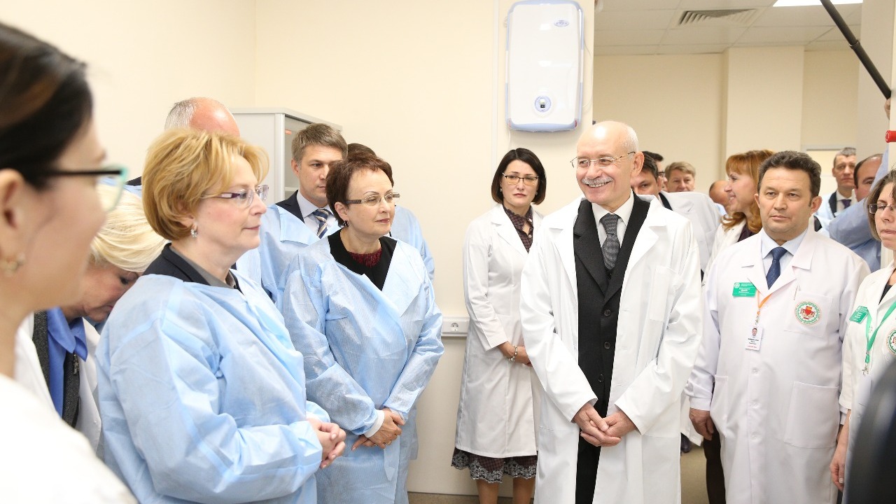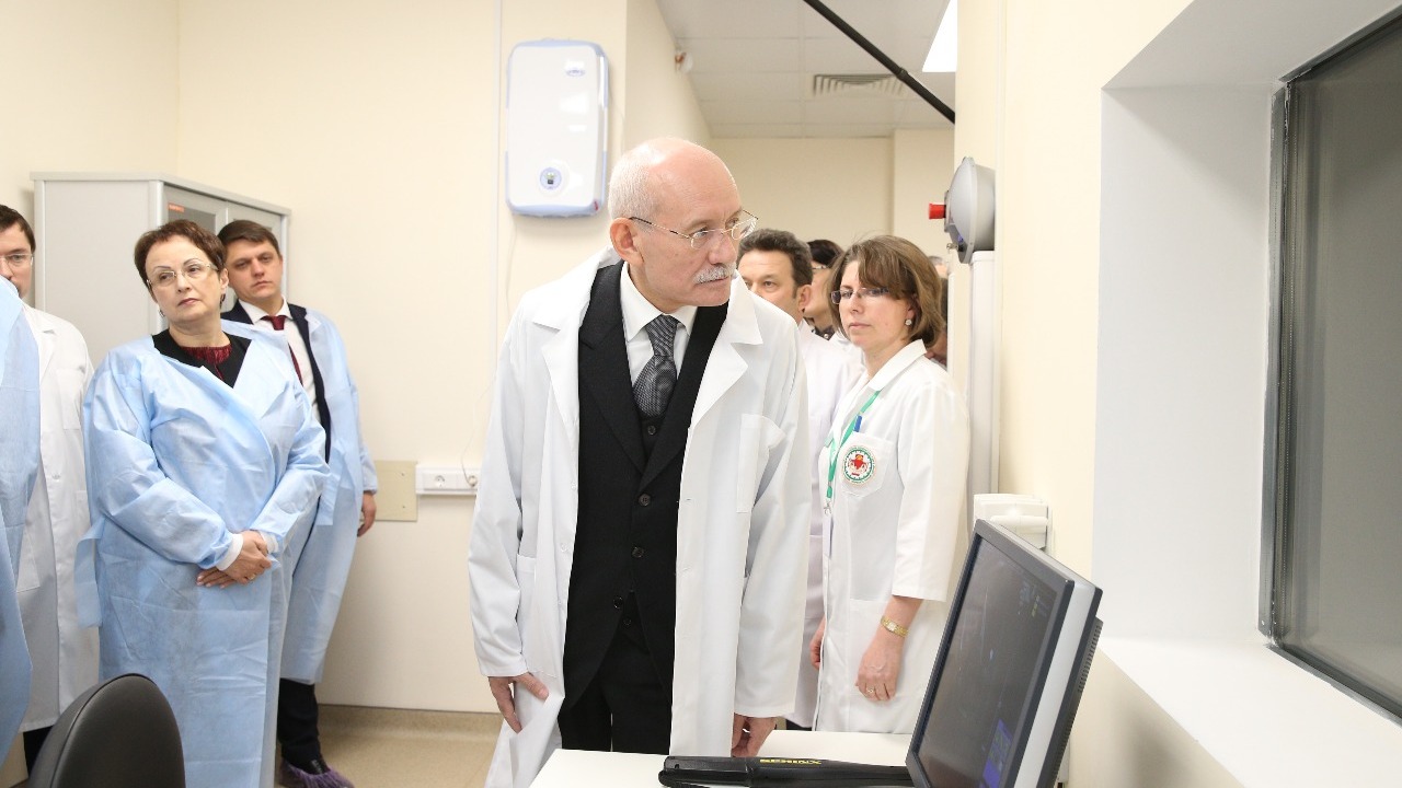 Рустэм Хамитов, Вероника Скворцова и Сергей Чемезов осмотрели отделения лучевой, функциональной и магнитно-резонансной диагностики, патологии, реанимации и интенсивной терапии новорожденных, приёмное, родовое и послеродовое отделения, клинико-диагностическую лабораторию.