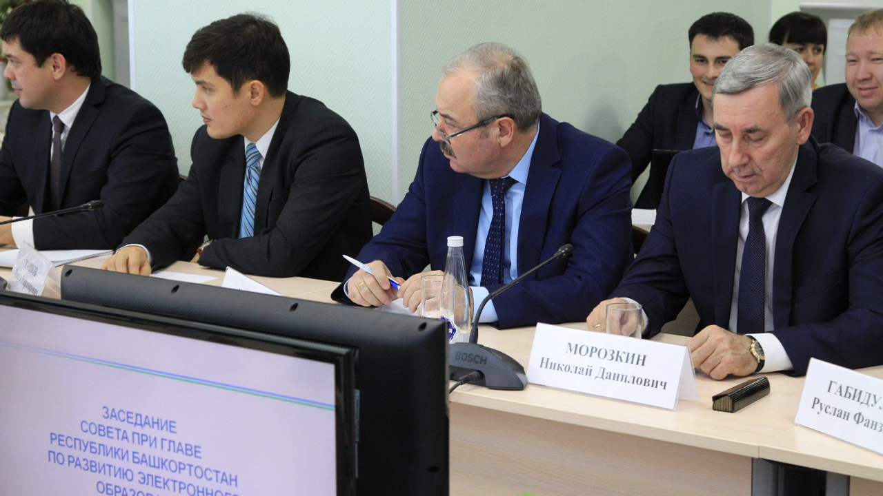 Глава Башкортостана отметил, что продолжается работа по внедрению электронного обучения в системе образования. В соответствии с республиканской программой «Развитие информационного общества» доля организаций, применяющих или использующих электронное обучение, должна увеличиться с 30 процентов в прошлом году до 80 процентов в 2017 году. Число школ, применяющих электронные ресурсы, выросло с 30 процентов в 2015 году до 50 процентов в этом. Планируется, что в 2018-2019 годах 100 процентов школ будут использовать электронные ресурсы.
