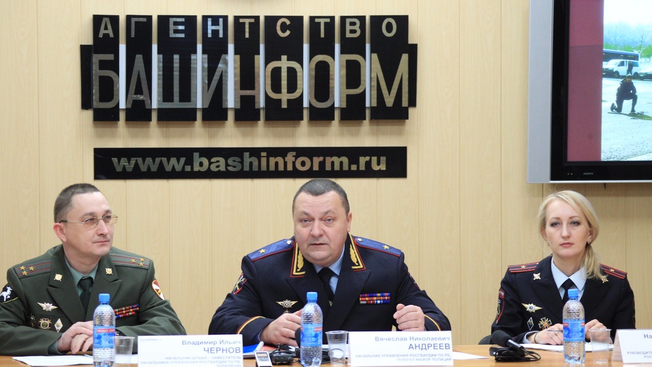 УФА, 19 дек 2016. /ИА «Башинформ», Ксения Калинина/. Росгвардия Башкирии пополнила федеральный бюджет на полмиллиарда рублей. Об этом 19 декабря на пресс-конференции в информагентстве «Башинформ» сообщил начальник Управления Росгвардии по РБ, генерал-майор полиции Вячеслав Андреев.
