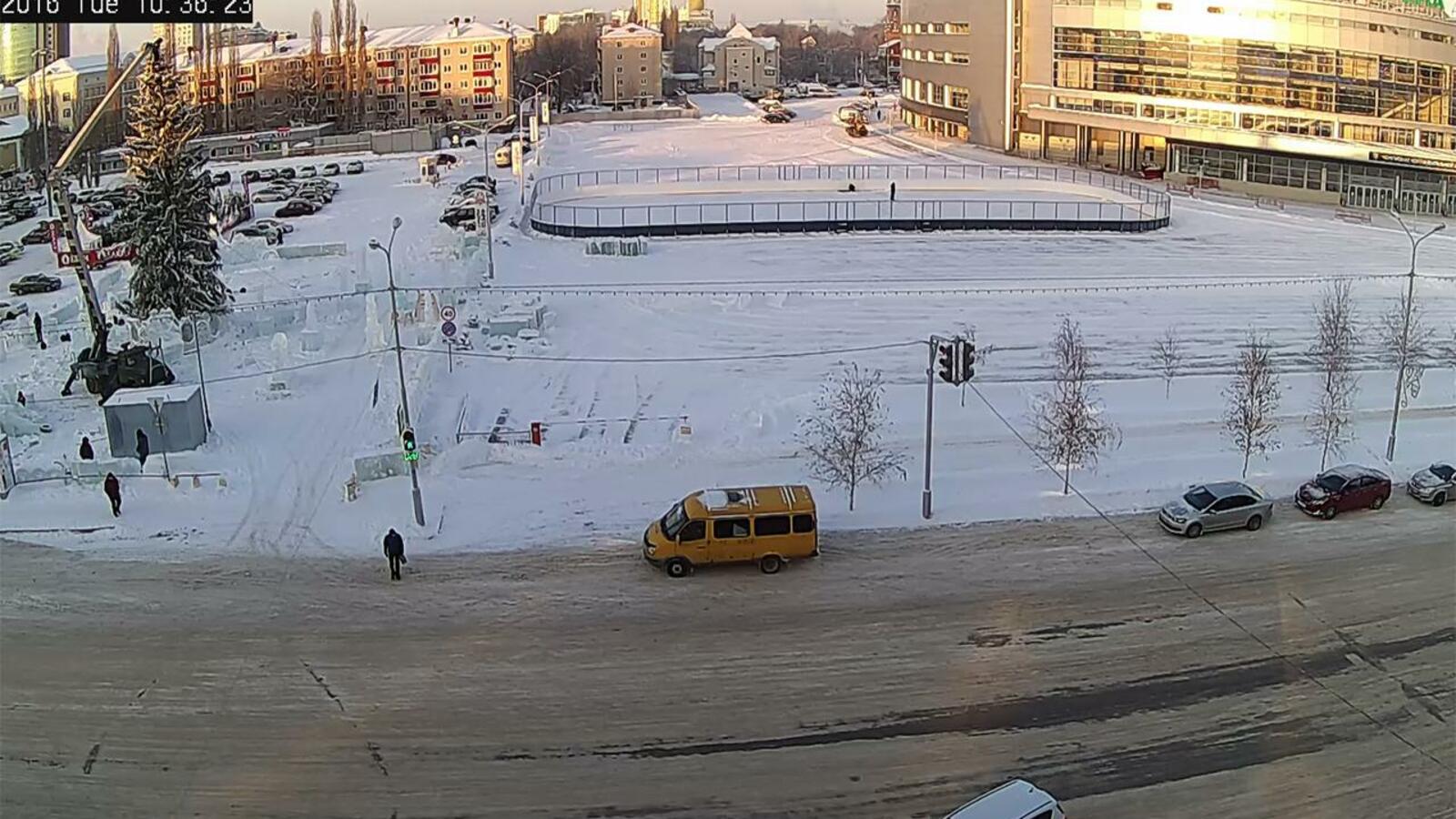 За строительством ледового городка к Неделе звезд хоккея в Уфе можно наблюдать в онлайн-режиме