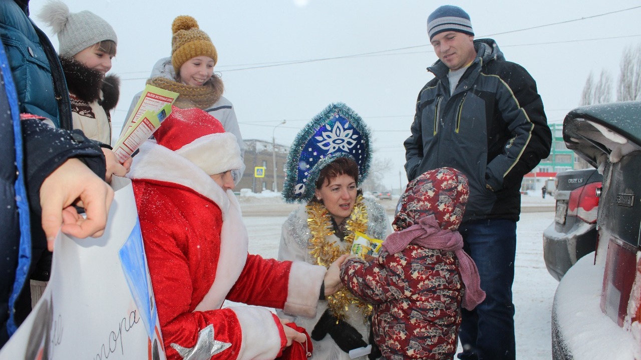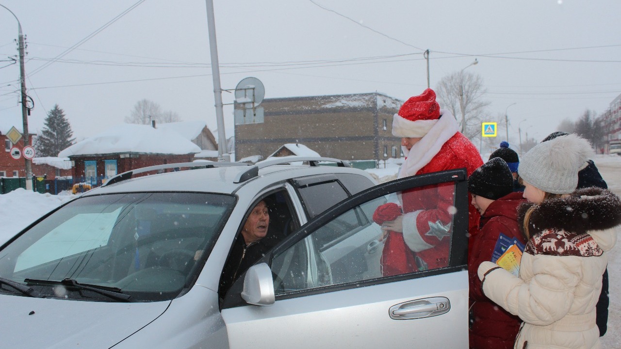 Дед Мороз и Снегурочка, поздравляя участников движения с праздником, призывали их быть внимательными и аккуратными на дорогах, а также проявлять уважение водителей и пешеходов другу к другу. Объясняли значимость соблюдения правил дорожного движения и члены ЮИД, раздавая памятки, календари, светоотражающие браслеты. Если в остановившейся машине оказывался ребенок, то он еще к тому же получал сладкий подарок и светоотражающий браслет. Все попавшиеся в рамках акции дети-пассажиры были пристегнуты удерживающими устройствами либо сидели в специальном кресле. Это порадовало Деда Мороза-инспектора. Некоторые сидящие в машине ребята, а также малыши-пешеходы, гуляющие с мамами на площади ГДК, увидев сказочного старика, читали ему стихи.