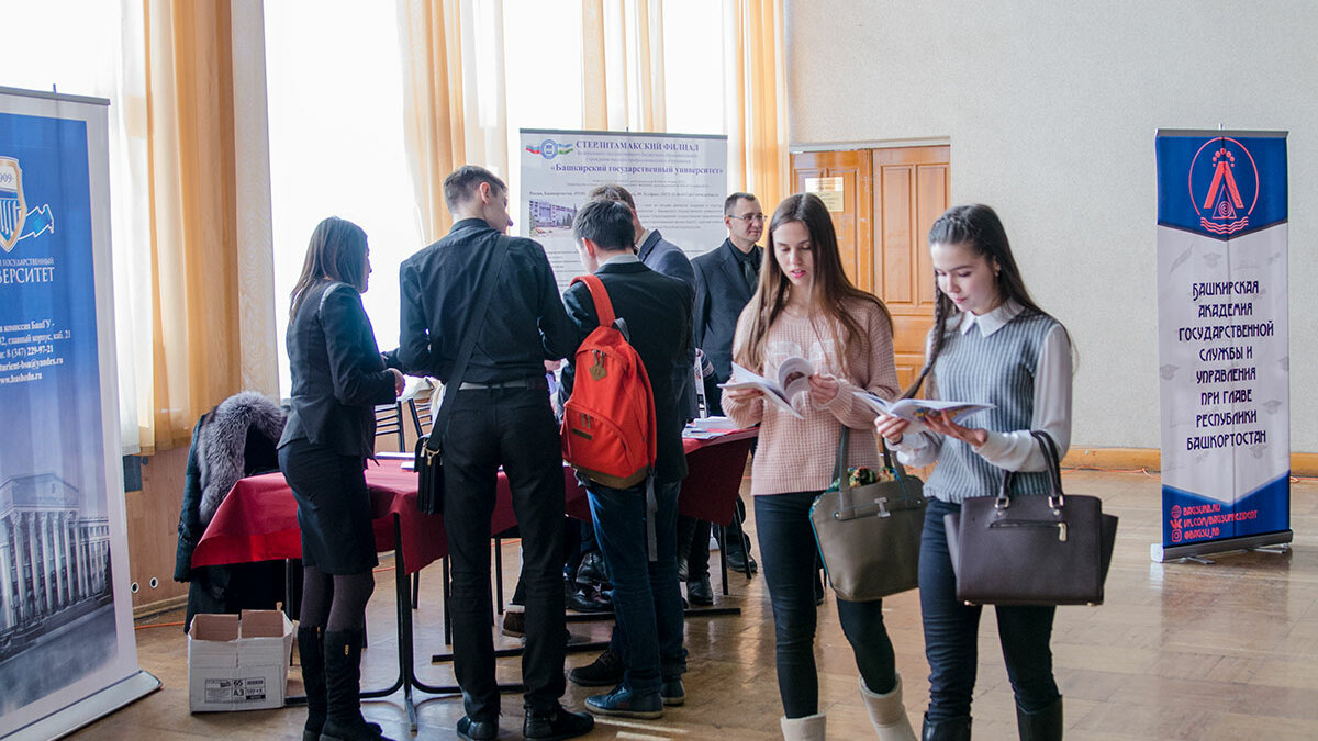 В Стерлитамакском государственном дворце культуры была организована выставка вузов республики, позволяющая школьникам ознакомиться с направлениями подготовки и правилами приема.