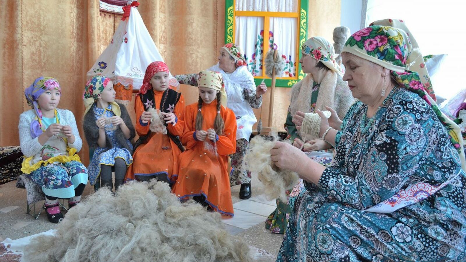УФА, 9 фев 2017. /ИА «Башинформ», Алим Фаизов/. В Башкортостане устраивают праздники веретена с участием пожилых людей. Накануне праздник веретена прошел в селе Тукаево Туймазинского района. Зал сельского Дома культуры при помощи декораций был искусно превращен в деревенскую избу, в которой собрались женщины и дети в национальных костюмах. Одни подготавливали шерсть, другие ее пряли, и при этом все вместе пели задушевные песни. Исполнителями этого действа стали участники фольклорного ансамбля «Истэлек» («Память»), в котором занимаются 25 человек. За всем происходящим с интересом наблюдали односельчане и жители соседних сёл.