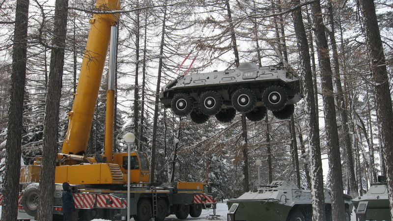 Для установки бронетранспортера был задействован автокран. «Отличный подарок району к предстоящему празднику станет еще одним украшением нашего парка», - отметил один из его посетителей, Почетный гражданин Орджоникидзевского района, участник Великой Отечественной войны Ильгизар Хайров.