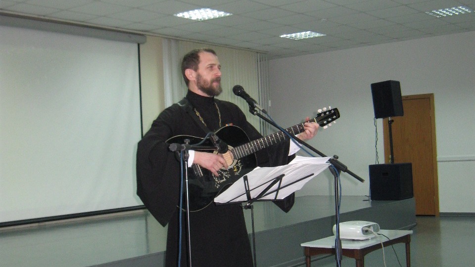 Дружными аплодисментами члены клуба встретили выступление настоятеля Свято-Пантелеимоновского храма - протоиерея Виктора Иванова, который не только великолепно исполнил под гитару песни собственного сочинения, но и поделился своими мыслями о воспитании детей и роли мужчины в семье. В конце выступления отец Виктор пригласил всех на концерт в честь 15-летия Православного военно-патриотического объединения «Александр Невский». Мероприятие состоится 21 февраля в Большом зале Городского культурно-досугового центра (ДК Химиков).