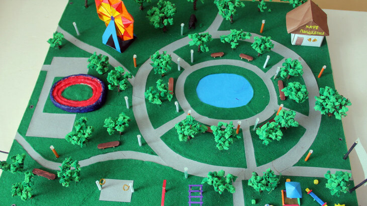 Юный архитектор, работая над макетом, учел все нюансы: сделал фотографии местности будущей парковой зоны, провел исследование, набросал эскизы, опросил сверстников и выяснил, что они хотели бы видеть в парке.