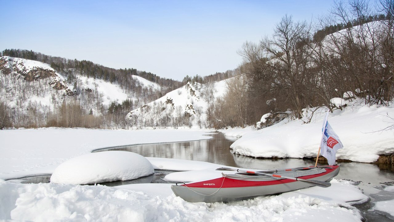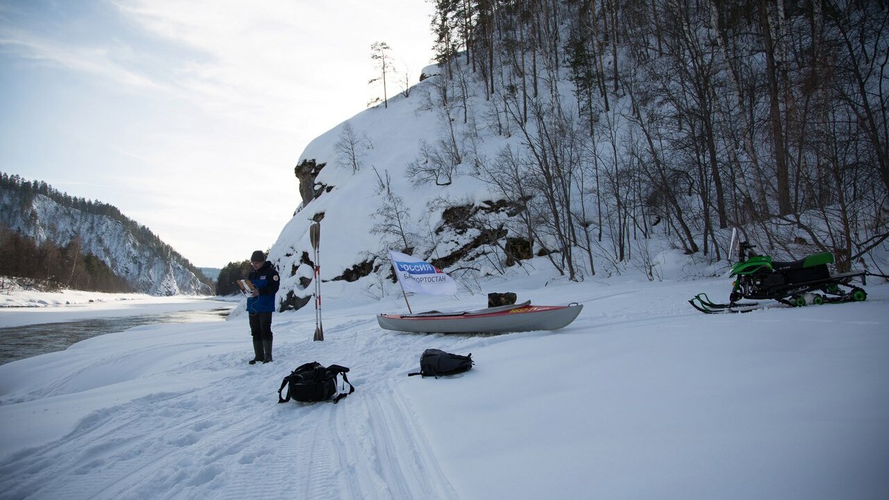 УФА, 8 мар 2017. /ИА «Башинформ», Гульфия Акулова/. Участники команды проекта «Культурный сезон. Путешествие по Башкирии» телеканала «Россия 24 Башкортостан» одними из первых в регионе сплавились по реке Белой. В это время года на подобный поступок еще никто не отваживался.