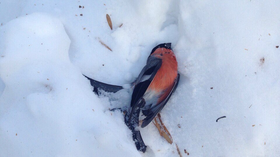 УФА, 10 мар 2017. /ИА «Башинформ», Гульфия Акулова/. В Башкортостане зоозащитники регистрируют гибель снегирей. В Стерлитамаке птицы обнаружены погибшими, несколько снегирей подобраны ранеными. Такое наблюдается во дворах по проспекту Октября от дома N1 до дома N27, практически 200 метров по прямой. Фотографии в группу