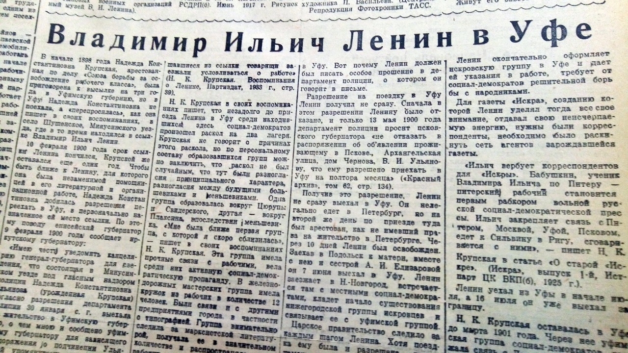 В начале 1898 года Надежда Крупская была приговорена к высылке на три года в Уфимскую губернию, сообщает газета. Однако она «перепросилась» в село Шушенское Минусинского уезда, где находился в ссылке Владимир Ильич Ленин. Когда срок ссылки Ленина закончился, Крупская добилась разрешения переехать в Уфу. В феврале 1900 года Ленин и Крупская приехали в Уфу. Несколько дней пребывания в городе Ленин использовал для подбора людей и установления связей, необходимых для создания общерусской политической газеты. В Уфе он заложил основы революционного органа печати - «Искры», которая сыграла особую роль в организации партии большевиков.