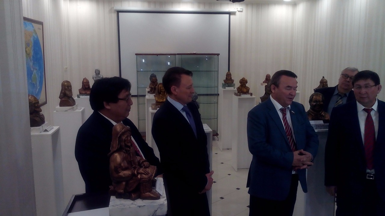 УФА, 28 апр 2017. /ИА «Башинформ», Алим Фаизов/. В Постоянном представительстве Республики Саха (Якутии) при Президенте РФ открылась персональная выставка скульптур сенатора от Башкортостана, члена Комитета Совета Федерации по международным делам, руководителя РОО «Землячество Башкортостана» в Москве Рафаила Зинурова. Экспозиция «Путь легенды» приурочена к Дню Якутии, отмечаемому 27 апреля, и 95-летию образования Якутской Автономной Советской Социалистической Республики. Она состоит из 17 бюстов знаменитых национальных героев разных стран. На открытии выставки побывали сенатор от Республики Якутия (Саха) Александр Акимов, Постоянный представитель Республики Саха (Якутии) при Президенте РФ, руководитель землячества региона в Москве Юрий Куприянов, Полномочный представитель Республики Башкортостан при Президенте Российской Федерации Артур Шайнуров.