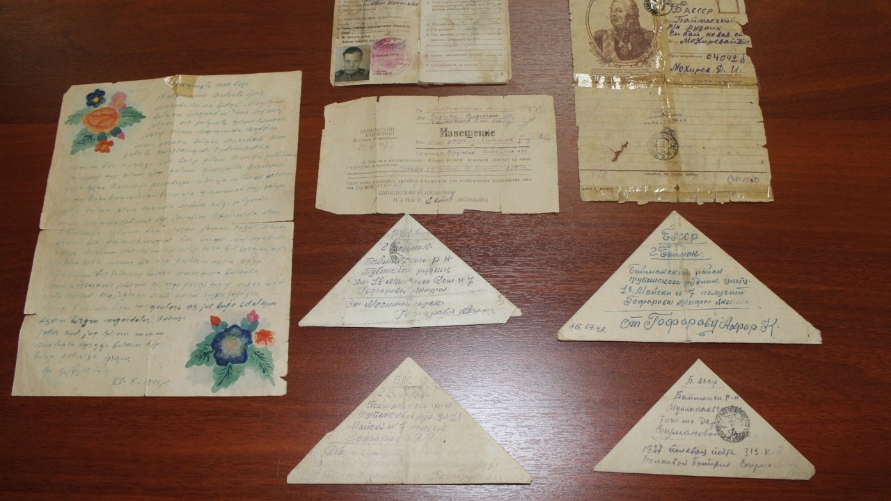 Невозможно было остаться равнодушным, изучая солдатские треугольники - письма с фронта. Вот, например, что пишет боец Красной армии Дмитрий Мохирев: «Таня и милые мои детки, читайте мои письма, но меня, наверное, вам увидеть не придется. Почему, вы и сами знаете – какая война идет. Таня, пишите мне письма. Пока я живой, я жду…»