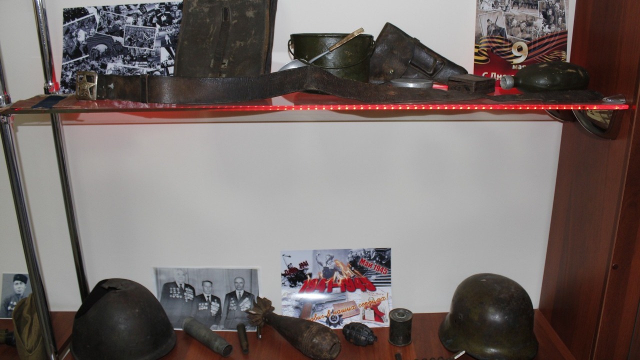 На ней представлено более 100 предметов - фотографии, личные вещи, оружие, документы, письма наших земляков, воинов-зауральцев, прошедших дорогами войны. Кроме того выставлены стенды Национального музея Башкортостана, рассказывающие о боевом пути генерала Минигали Шаймуратова и 112-ой Башкирской кавалерийской дивизии. Вместе с экспонатами музея в фойе были размещены репродукции военных плакатов, специально приобретенных ООО «Башкирская медь» накануне праздника для своего производственного музея.