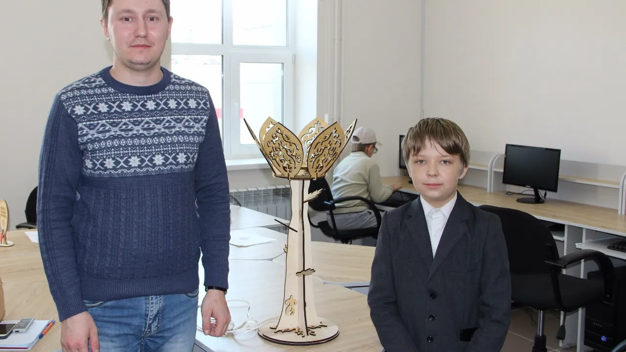 11-летний Никита Плотников, который занимается сразу в двух кружках - центре молодежного инновационного творчества и студии программирования, сделал своими руками самый настоящий светильник.