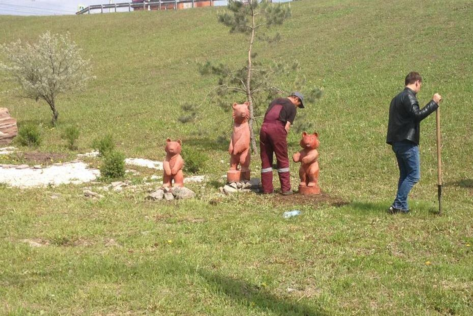УФА, 2 июн 2017. /ИА «Башинформ», Ольга Муртазина/. В Уфе на проспекте Салавата Юлаева появился новый арт-объект. Как сообщили в мэрии, деревянные фигуры трех медвежат изготовили студенты художественно-промышленного колледжа. Скульптуры обработаны специальным раствором, предохраняющим от перепада температур и муравьев. Заказ был сделан в рамках благоустройства Октябрьского района города, пояснили в муниципалитете.