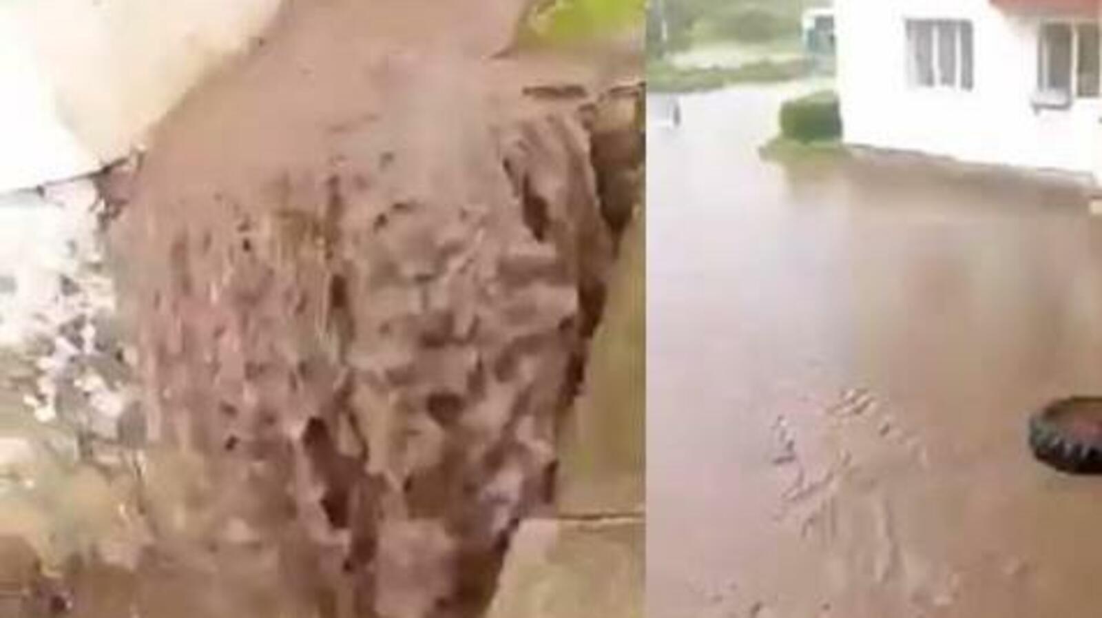 В уфимском дворе образовалось «дождевое» озеро с «грязевым» водопадом — видео