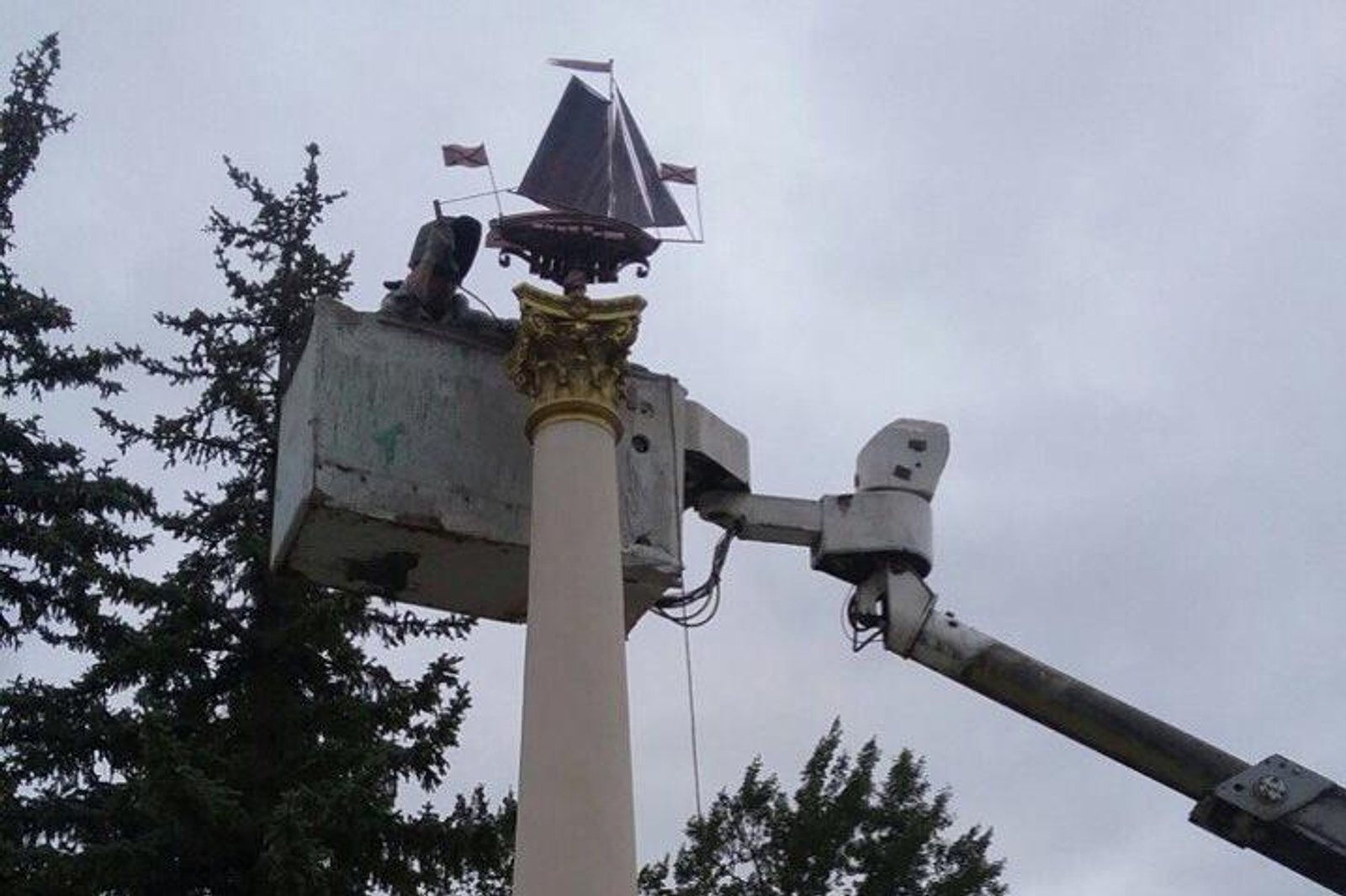 УФА, 6 июл 2017. /ИА «Башинформ», Ксения Калинина/. В уфимском парке Победы появился новый памятник. На бетонный постамент установили парусник — копию первого ботика, построенного по указу Петра I.