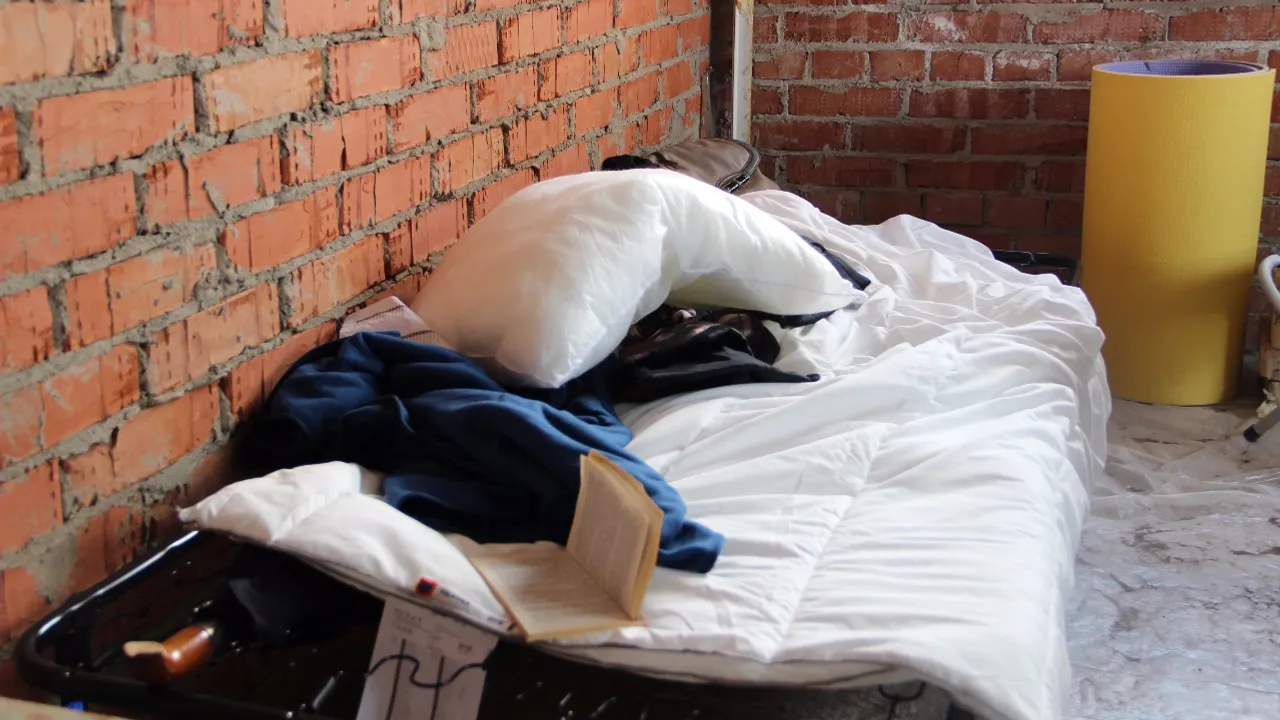 В акции принимают участие 11 дольщиков, двое из них голодают на рабочих местах. Обустроились они на шестом этаже. Выбор был неслучайный, так как верхние этажи залило водой, крыши нет, а на нижних этажах живут бездомные. Женщинам пришлось нанять охрану. Ночью почти не спали. На втором этаже живут шесть бездомных — три женщины и три мужчины с собакой. Они всю ночь шумели. Отмечается, что, в отличие от дольщиков, у «соседей» все обустроено для проживания в чужом доме, вплоть до места приготовления еды.