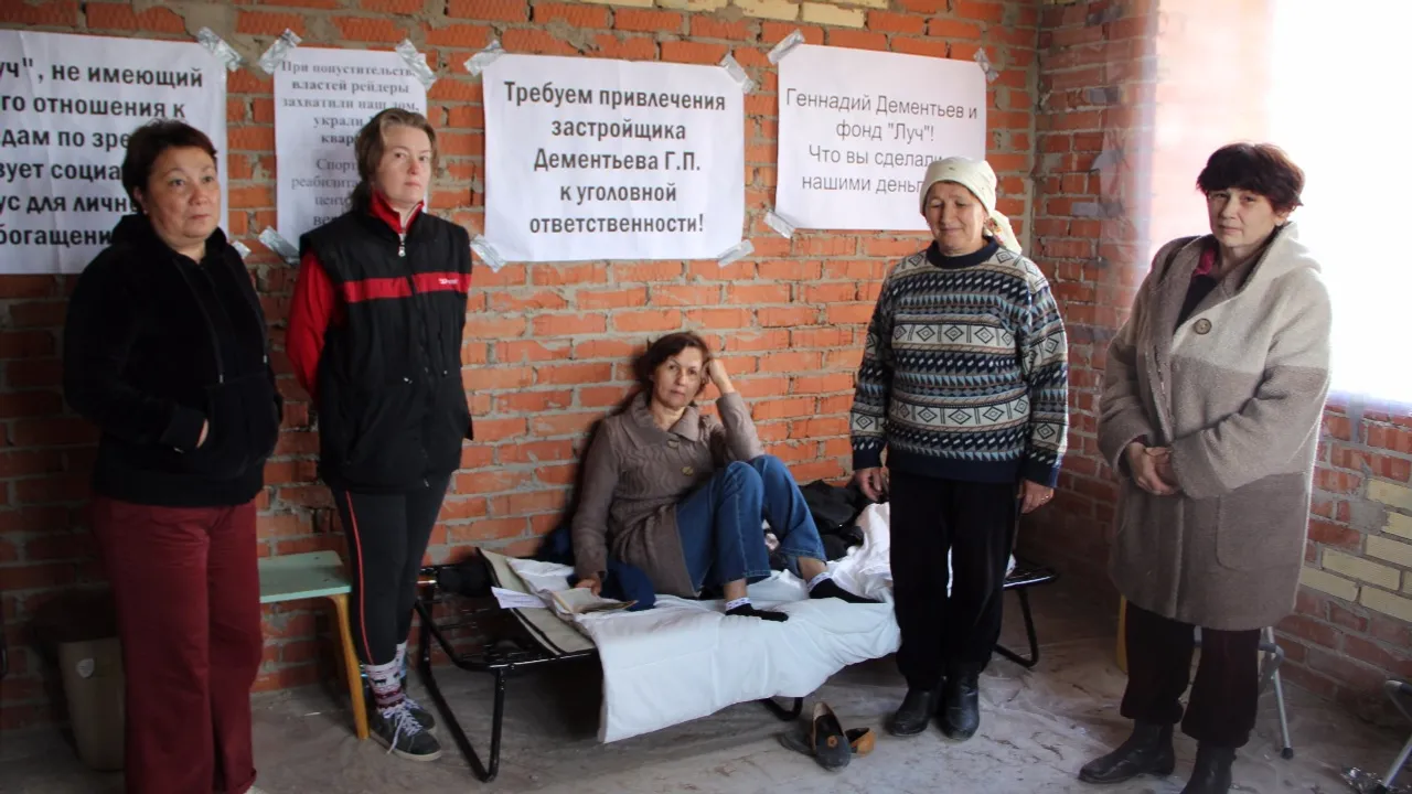 Участница голодовки Марина рассказала, что в ожидании окончания строительства обманутым дольщикам приходится жить, где придется: у родственников, в гараже, на съемных квартирах. Трое уже умерли, так и не дождавшись заветных квадратных метров.
