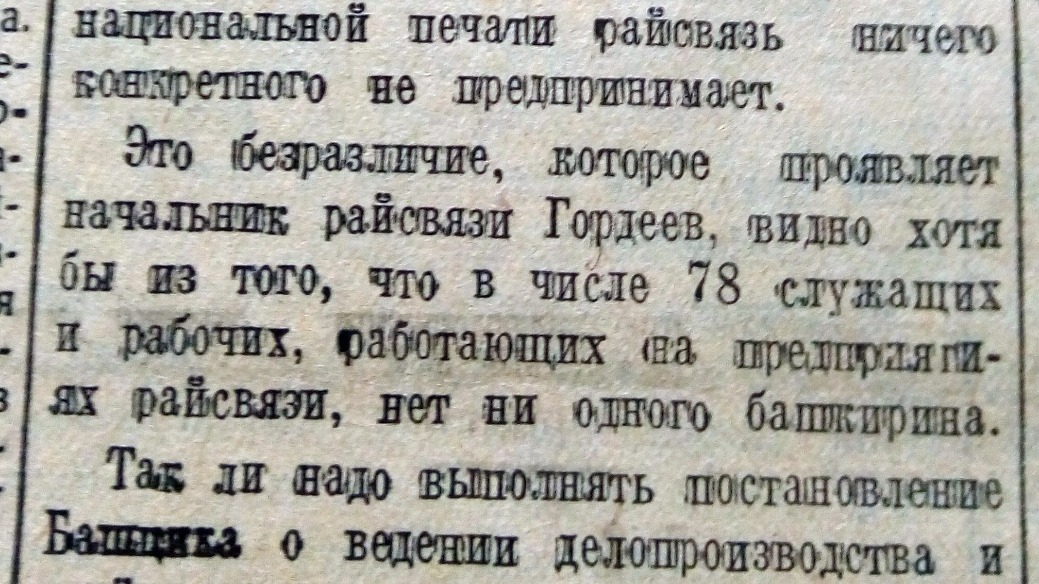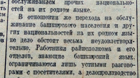 «Так ли надо выполнять постановление БашЦИКа о ведении делопроизводства и всей переписки с сельсоветами на языке той национальности, которая составляет большинство», - сетуют в газете.