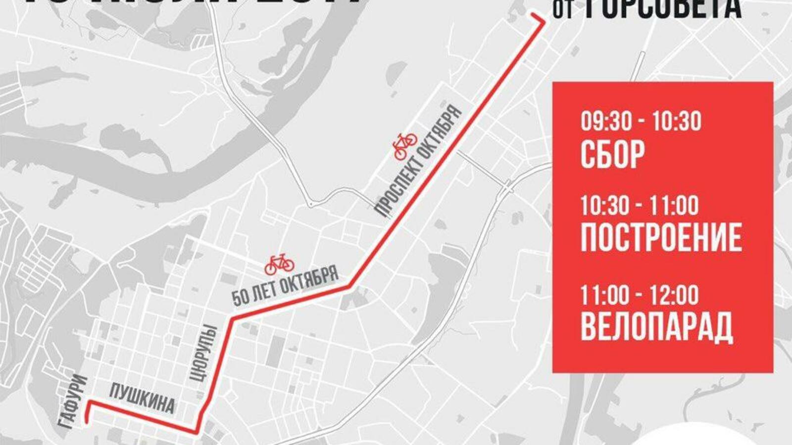 В связи с проведением мероприятия с 10.30 до 14 часов по мере прохождения велоколонны будет перекрыто движение транспорта на ряде улиц: пр. Октября от пересечения с ул. Кольской до пересечения с ул. 50 лет Октября - ул. 50 лет Октября от пр. Октября до ул. Цюрупы - ул. Цюрупы от ул. 50 лет Октября до ул. Пушкина - ул. Пушкина от ул. Цюрупы до ул. М. Гафури - ул. М. Гафури от ул. Пушкина до ул. З. Валиди, уточнили в пресс-службе администрации города.