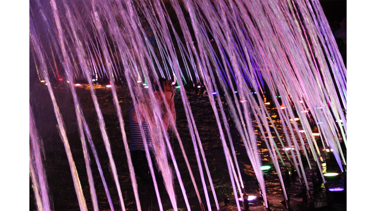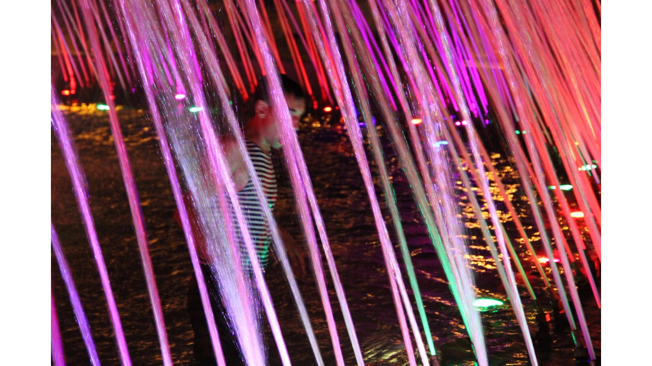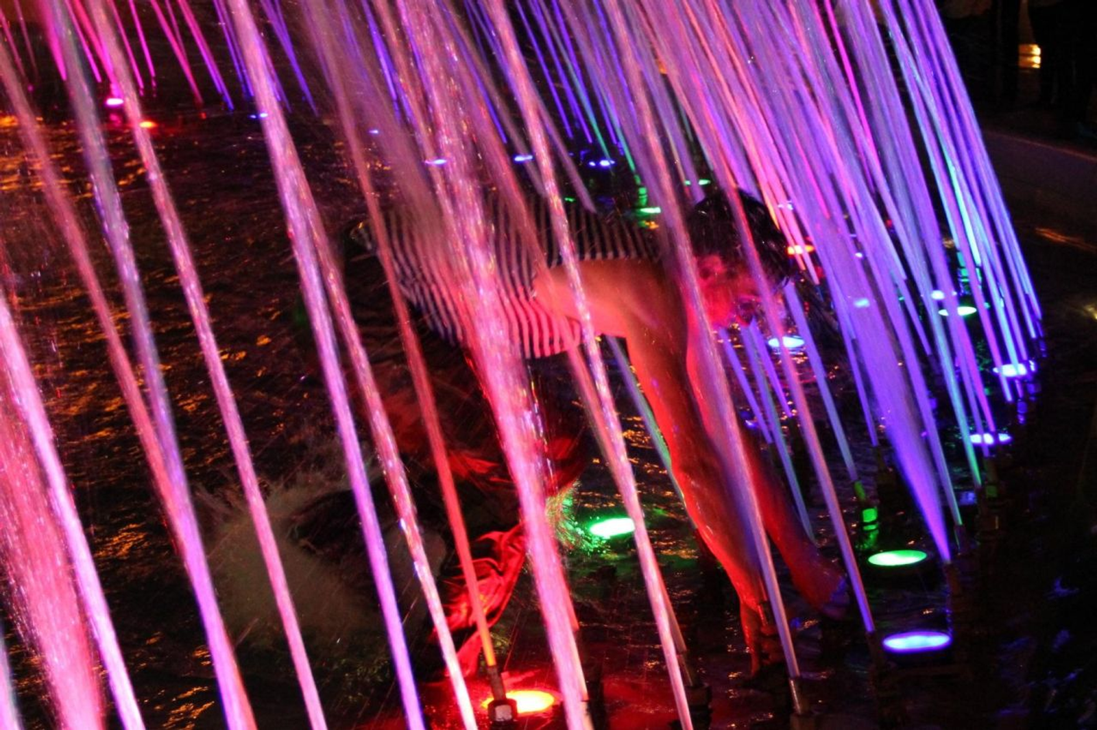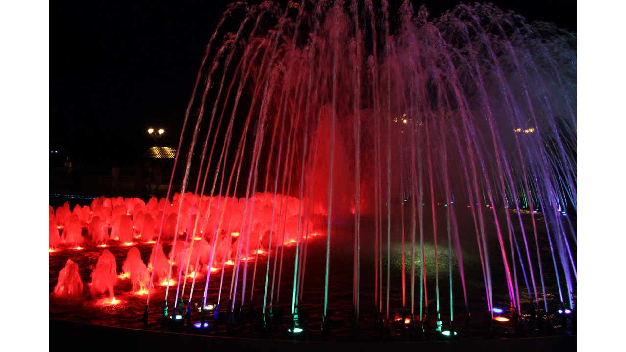 У ярко-подсвеченного центрального фонтана градус веселья заметно повышался. Разгоряченные песнями под гитару десантники никак не могли пренебречь «традицией» освежиться в воде. Полицейские следили за порядком, делали предупреждение. Тем не менее, празднующие свой профессиональный праздник поочередно на несколько секунд запрыгивали в фонтан. Затем, с нескрываемой радостью и даже гордостью, вылезали из воды и передавали эстафету своим сослуживцам.
