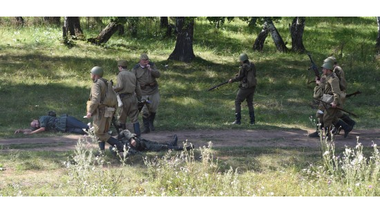 УФА, 22 авг 2017. /ИА «Башинформ», Алим Фаизов/. В Туймазинском районе республики, на поляне между селом Кандры-Кутуй и горнолыжным комплексом «Кандрыкуль», состоялась военно-историческая реконструкция боя за освобождение Белоруссии, произошедшего летом 1944 года. Участниками мероприятия стали представители военно-патриотического клуба «Рейд» из Санкт-Петербурга, Самары, Кирова, Уфы, Туймазов, воспитанники профильных лагерей «Юнармеец», «Патриот» и поискового отряда имени Хатмуллы Султанова. Для жителей района этот бой был важен тем, что в нем храбро сражался их земляк, Хатмулла Султанов.