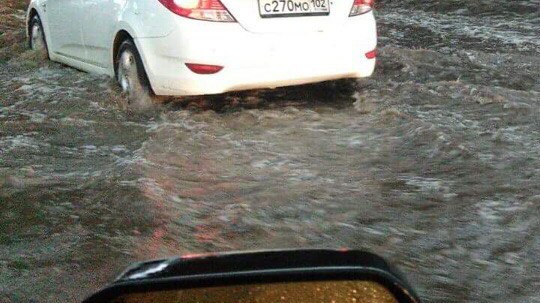 Примечательно, что ливень такой силы наблюдается лишь в центре Уфы. В Черниковке, по словам очевидцев, на данный момент дождя нет. В Чишмах светит солнце.