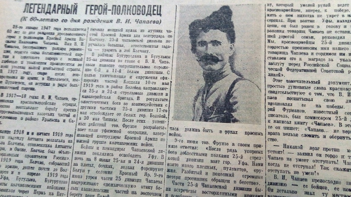 УФА, 11 сен 2017. /ИА «Башинформ», Галина Пантюхина/. Начдив Чапаев приказал взять Уфу за 24 часа и нанес решающее поражение армии Колчака. Об уфимской операции, психической атаке и о том, почему победила Красная Армия, рассказала газета «Красная Башкирия» в январе 1947 года. Агентство «Башинформ» продолжает знакомить читателей с материалами из Архива печати республики.